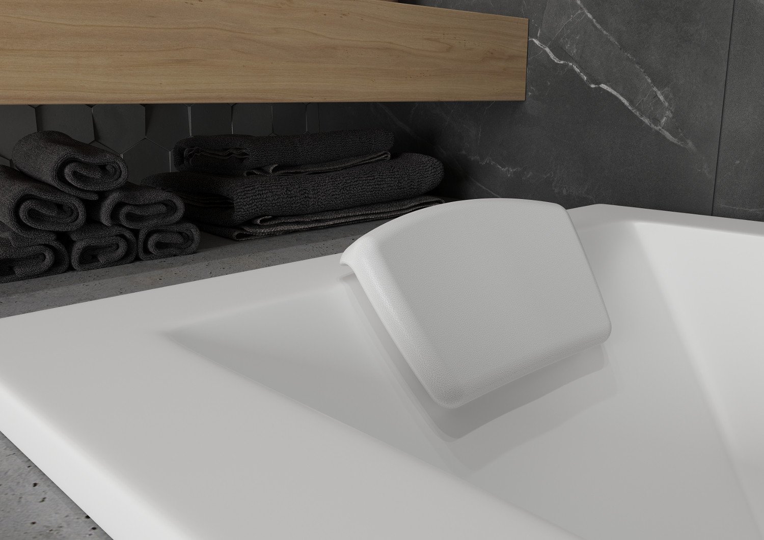 Zagłówek mocowany jest za pomocą przyssawki, nie uszkadzając w ten sposób powierzchni wanny. Bezinwazyjny montaż pozwala na szybką i wygodną zmianę położenia zagłówka, zależnie od potrzeb użytkownika, zapewniając wysoki komfort kąpieli.