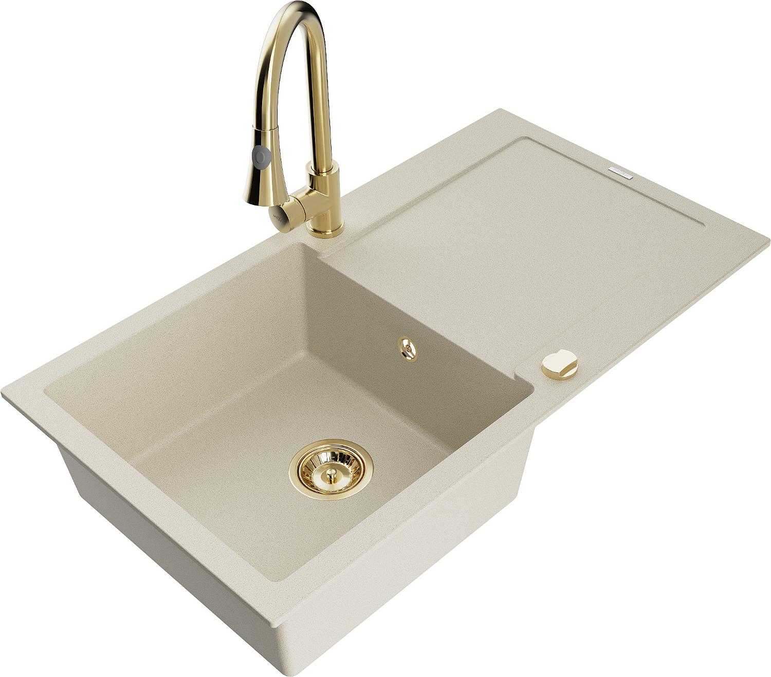 Mexen Leo zlewozmywak granitowy 1-komorowy z ociekaczem i baterią kuchenną Elia, beżowy - 6501-69-670101-50