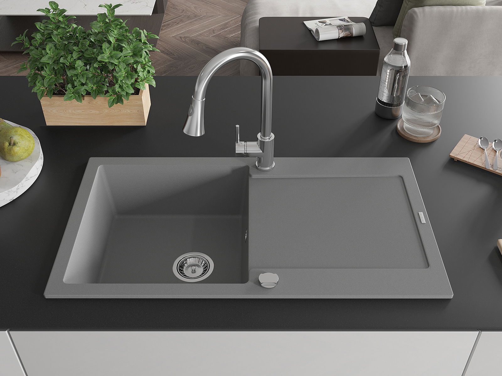 Zlewozmywak został wykonany z wysokiej jakości granitu. Stanowi eleganckie, a przede wszystkim praktyczne uzupełnienie każdej kuchni, niezależnie od jej stylu. Wysoka jakość oraz trwałość granitu zapewniają wieloletnie użytkowanie.