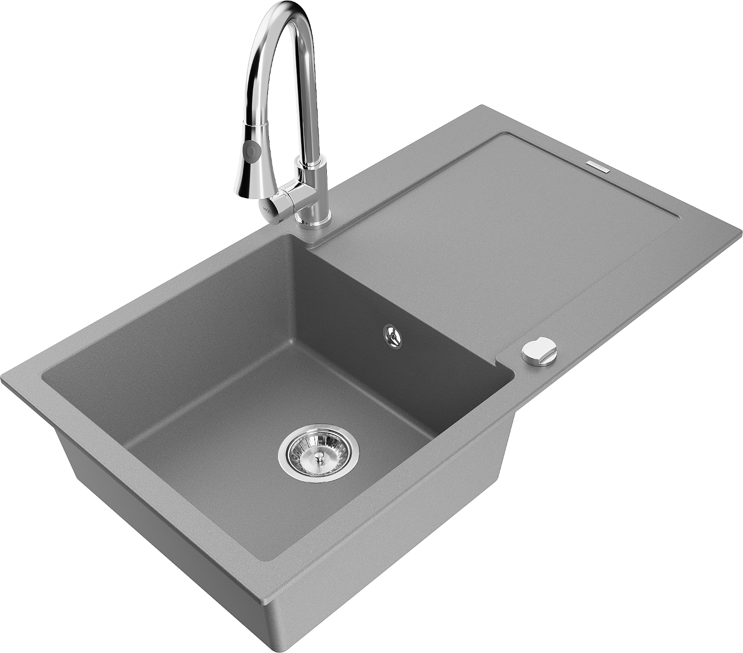Mexen Leo zlewozmywak granitowy 1-komorowy z ociekaczem i baterią kuchenną Elia, szary - 6501-71-670101-00