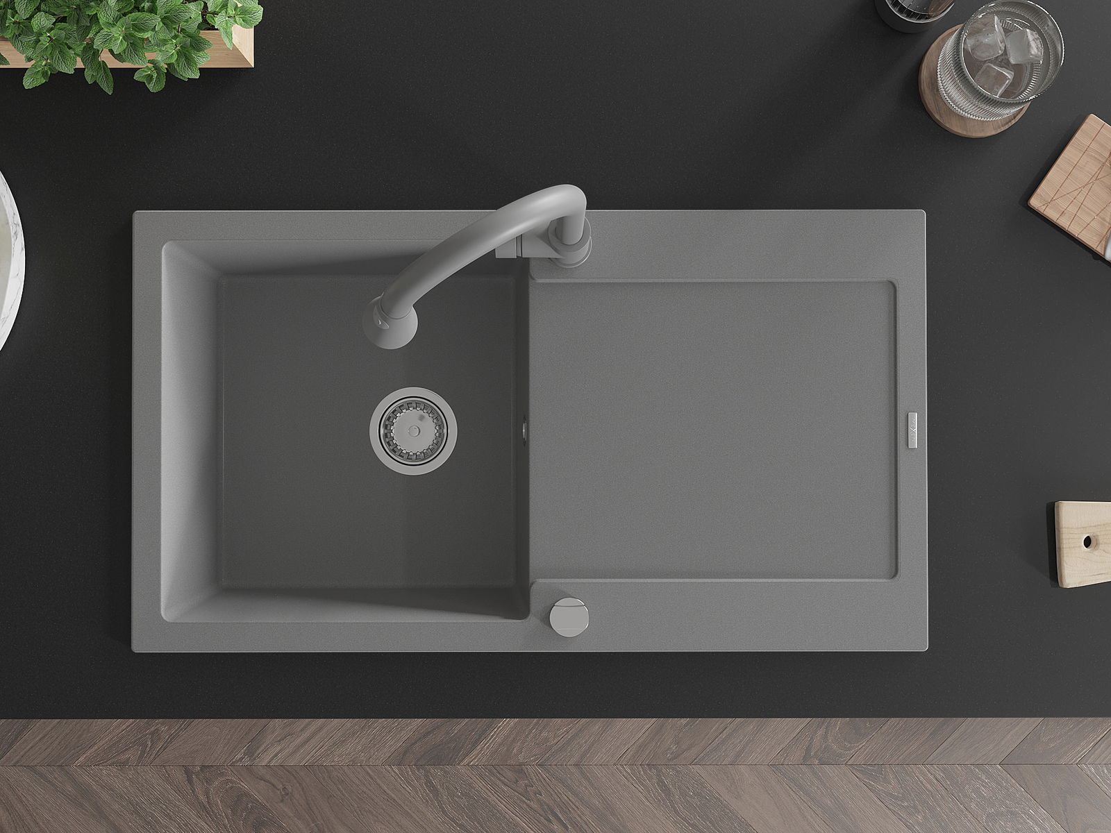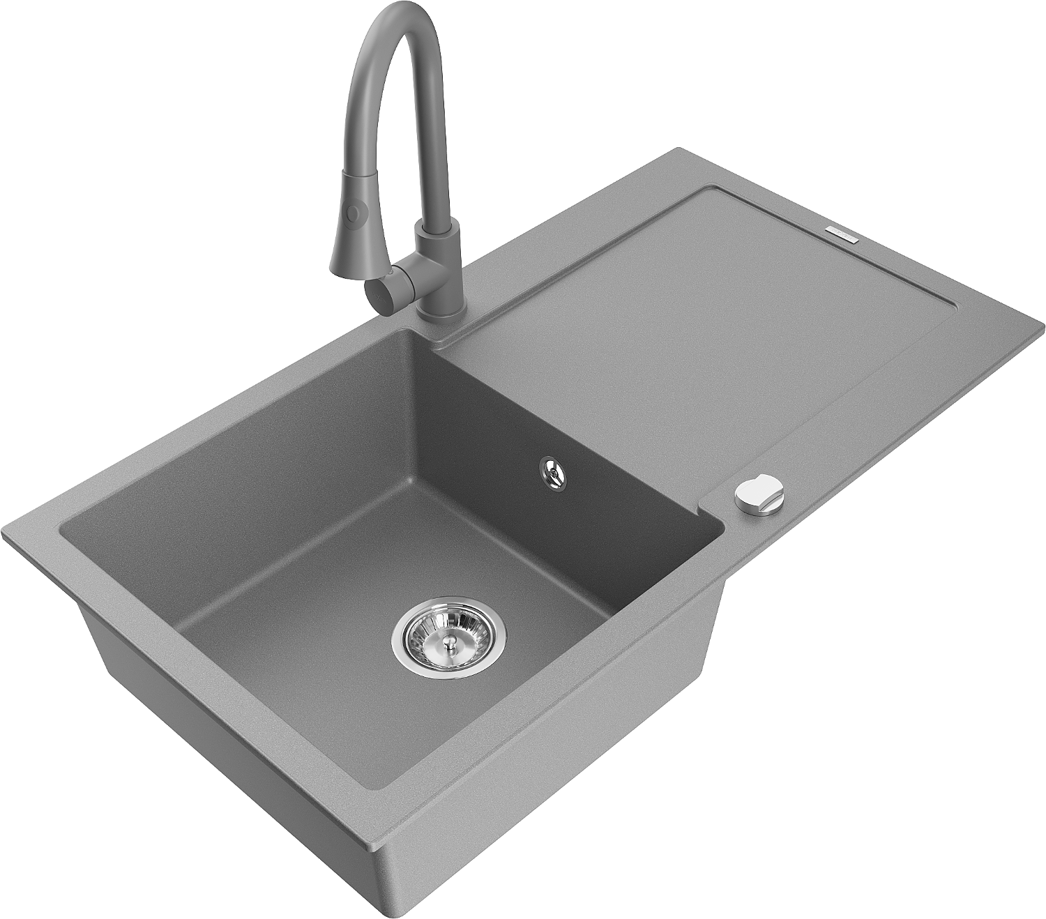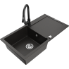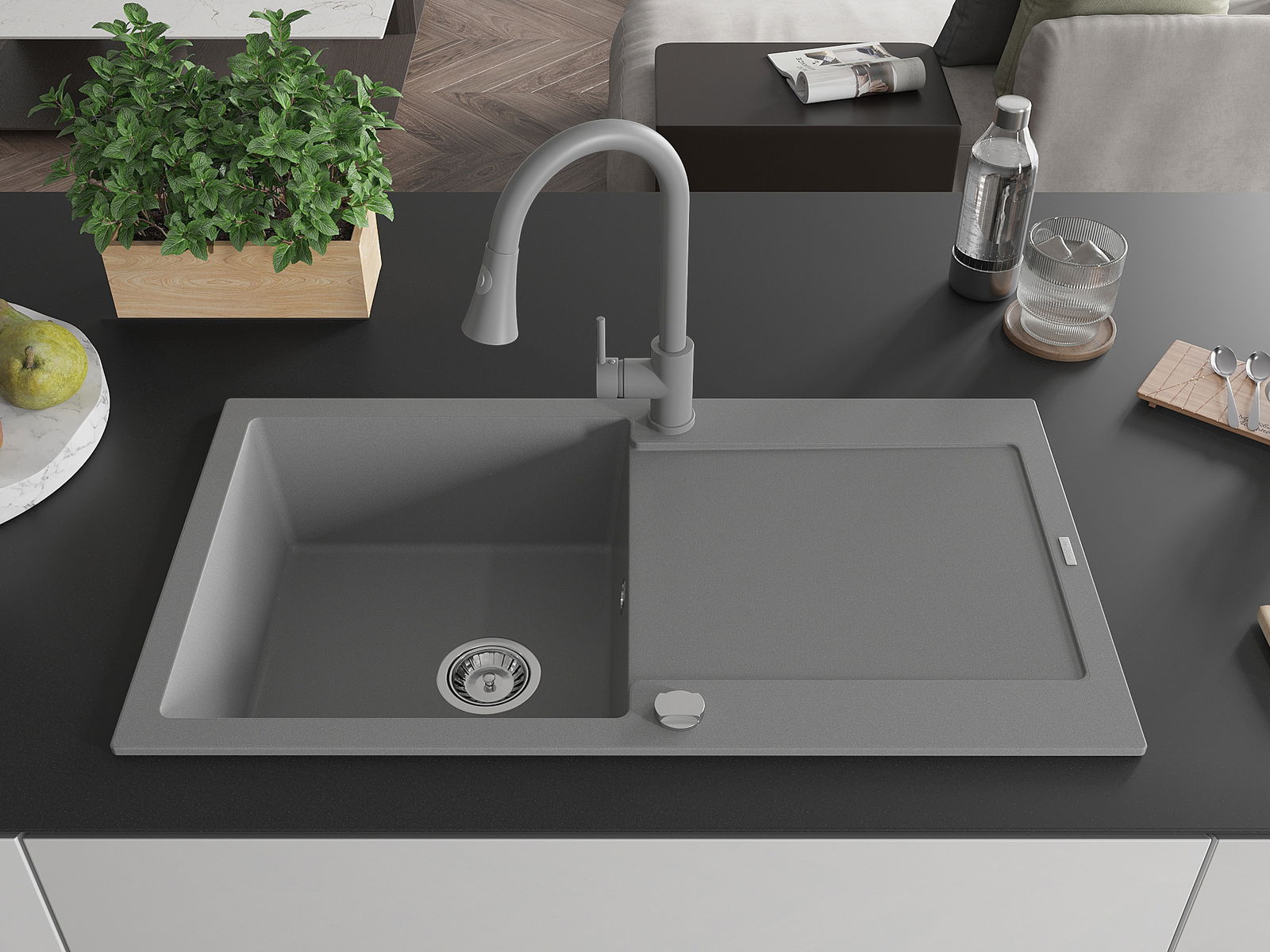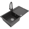 Mexen Leo zlewozmywak granitowy 1-komorowy z ociekaczem i baterią kuchenną Elia, szary - 6501-71-670101-71