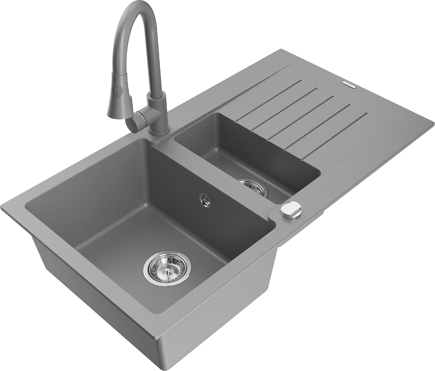 Mexen Matias zlewozmywak granitowy 1,5-komorowy z ociekaczem i baterią kuchenną Elia, szary - 6502-71-670101-71