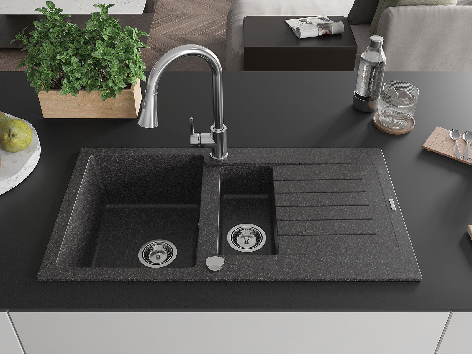 Zlewozmywak został wykonany z wysokiej jakości granitu. Stanowi eleganckie, a przede wszystkim praktyczne uzupełnienie każdej kuchni, niezależnie od jej stylu. Wysoka jakość oraz trwałość granitu zapewniają wieloletnie użytkowanie.