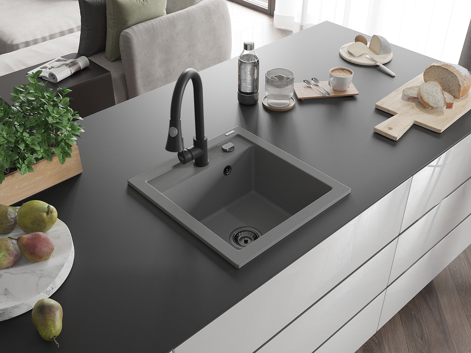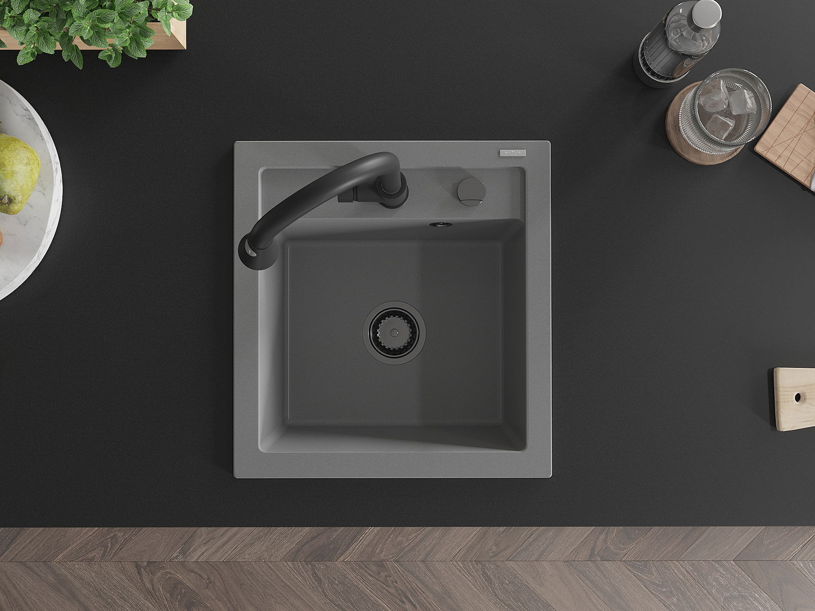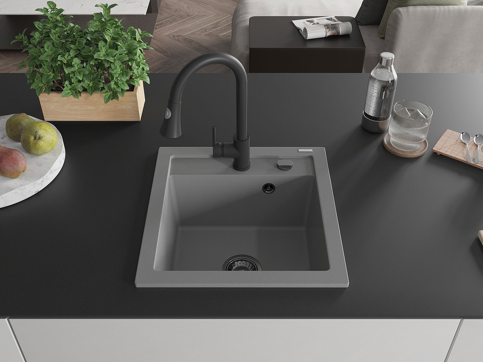 Mexen Vito zlewozmywak granitowy 1-komorowy z baterią kuchenną Elia, szary - 6503-71-670101-70-B