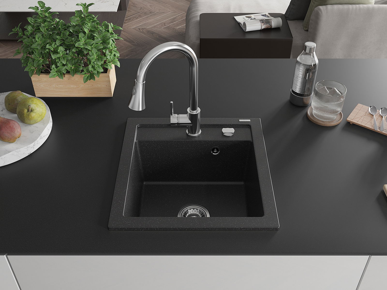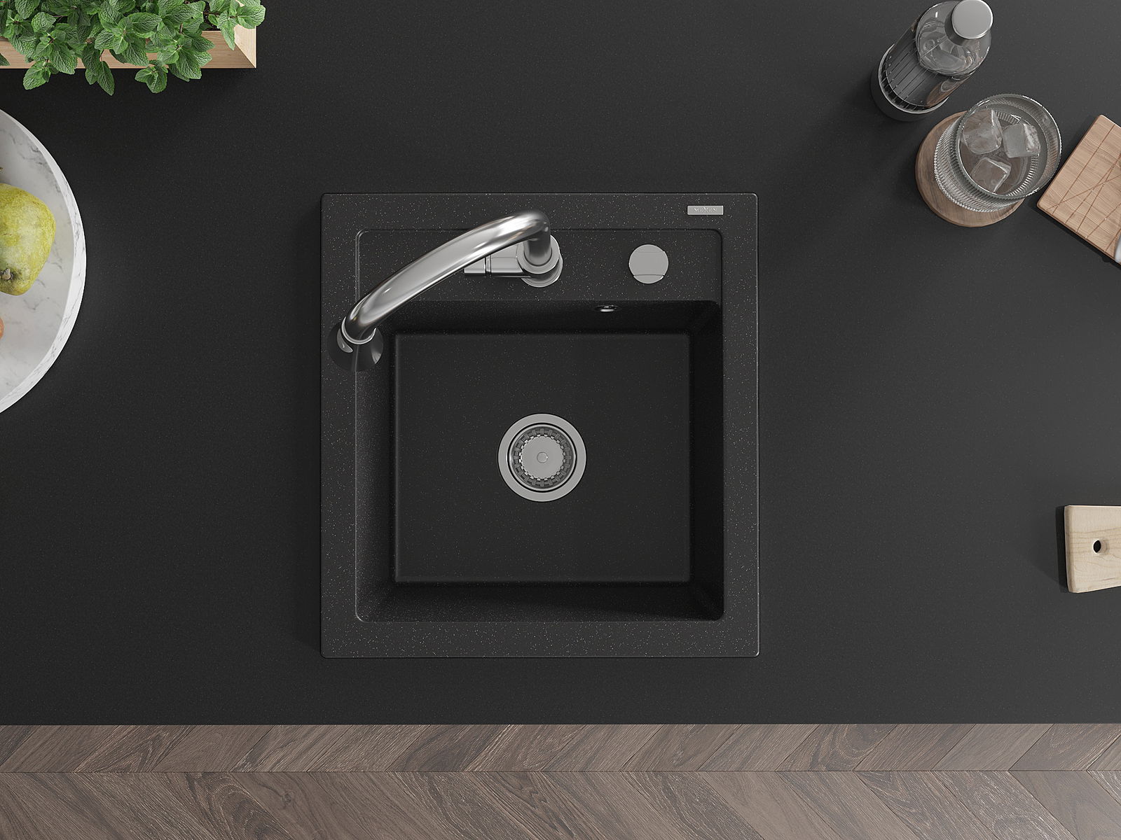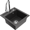 Mexen Vito zlewozmywak granitowy 1-komorowy z baterią kuchenną Elia, czarny/srebrny metalik - 6503-73-670101-00