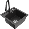 Mexen Vito zlewozmywak granitowy 1-komorowy z baterią kuchenną Elia, czarny/srebrny metalik - 6503-73-670101-70