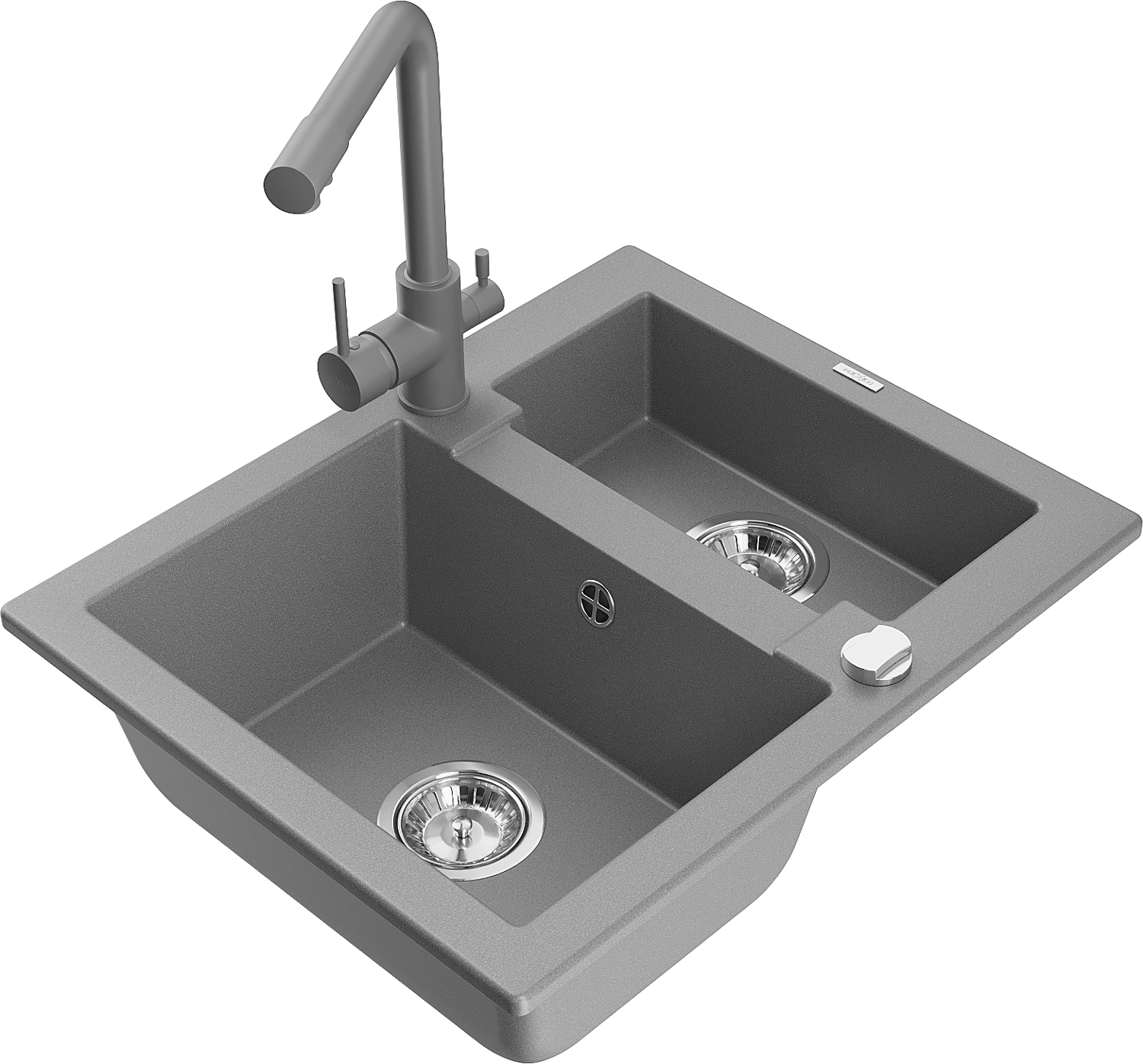 Mexen Carlos zlewozmywak granitowy 1,5-komorowy z baterią kuchenną Duero, szary - 6518-71-671600-71