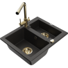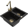 Mexen Carlos zlewozmywak granitowy 1,5-komorowy z baterią kuchenną Duero, czarny nakrapiany - 6518-76-671600-50
