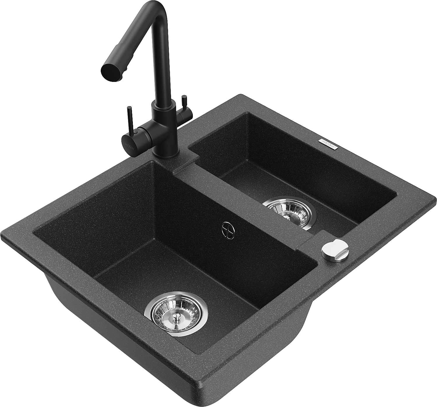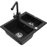 Mexen Carlos zlewozmywak granitowy 1,5-komorowy z baterią kuchenną Duero, czarny nakrapiany - 6518-76-671600-70