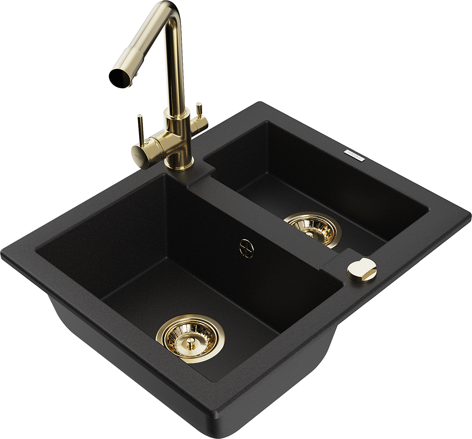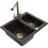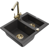Mexen Carlos zlewozmywak granitowy 1,5-komorowy z baterią kuchenną Duero, czarny - 6518-77-671600-50