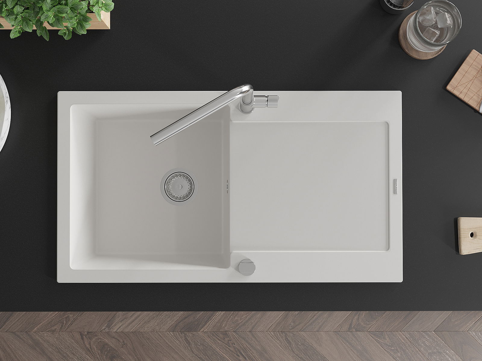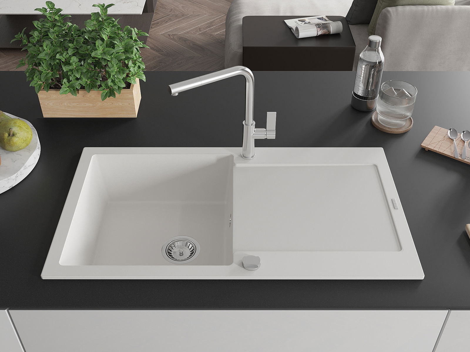 Powierzchnia zlewozmywaka jest odporna na plamy i przebarwienia, dzięki czemu jest łatwa w utrzymaniu czystości oraz zachowuje swój kolor przez długi czas użytkowania. Estetyczne i praktycznie uzupełnienie każdej kuchni.
