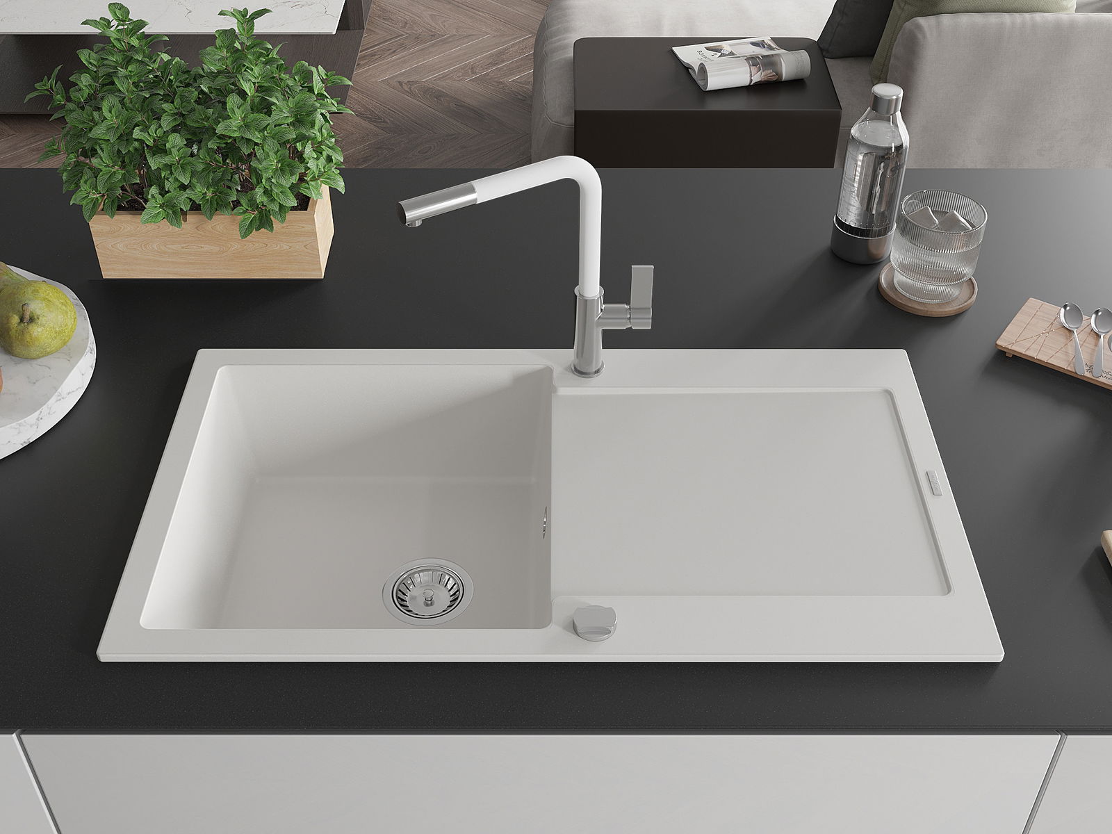 Powierzchnia zlewozmywaka jest odporna na plamy i przebarwienia, dzięki czemu jest łatwa w utrzymaniu czystości oraz zachowuje swój kolor przez długi czas użytkowania. Estetyczne i praktycznie uzupełnienie każdej kuchni.