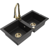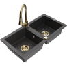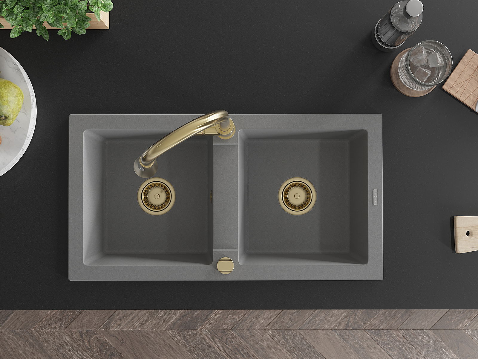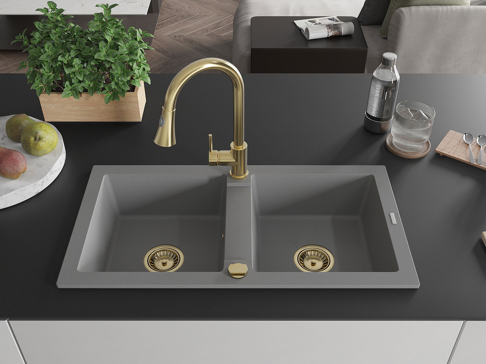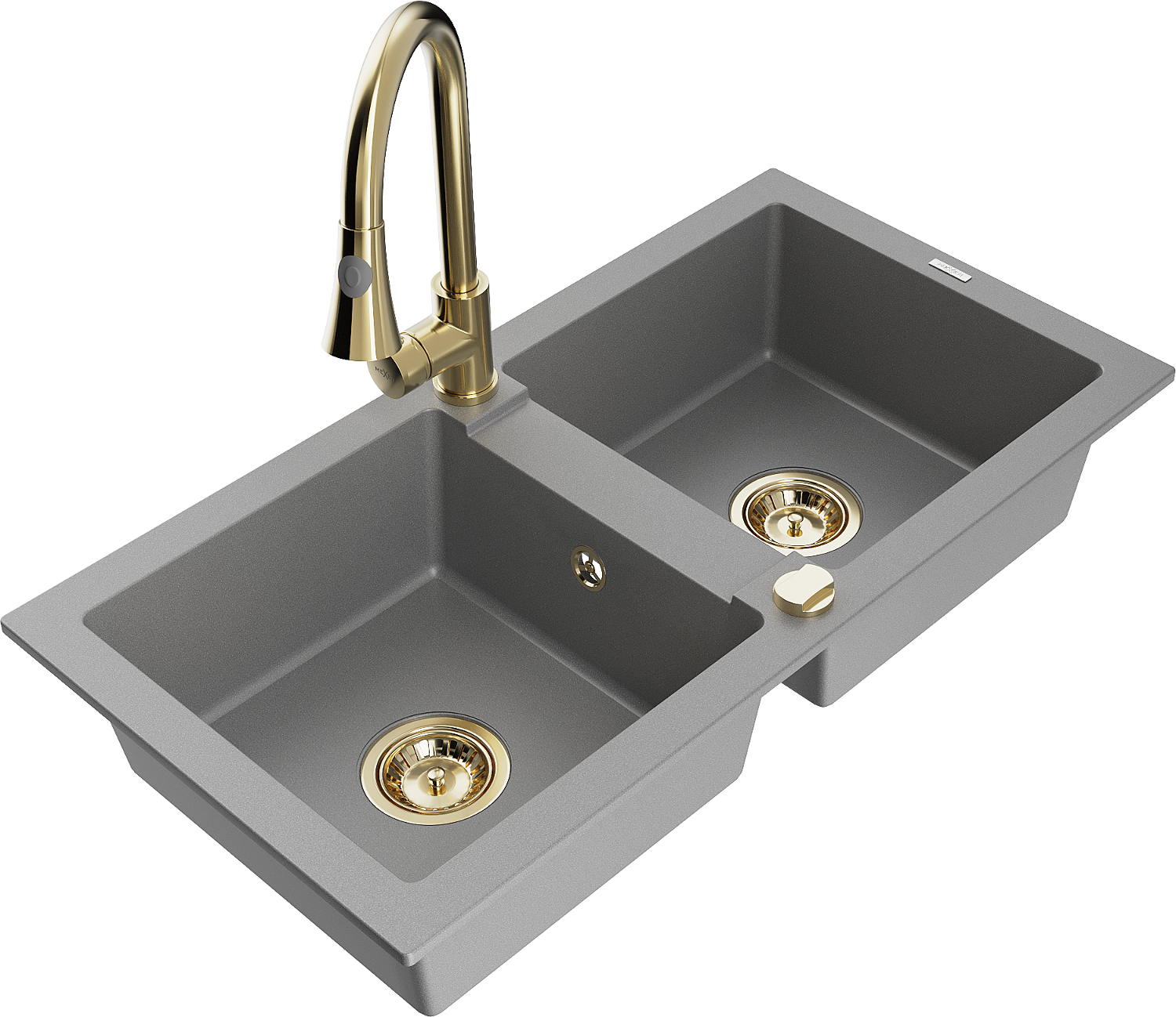 Mexen Mario zlewozmywak granitowy 2-komorowy z baterią kuchenną Elia, szary - 6504-71-670101-50