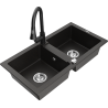 Mexen Mario zlewozmywak granitowy 2-komorowy z baterią kuchenną Elia, czarny/srebrny metalik - 6504-73-670101-70