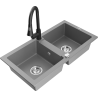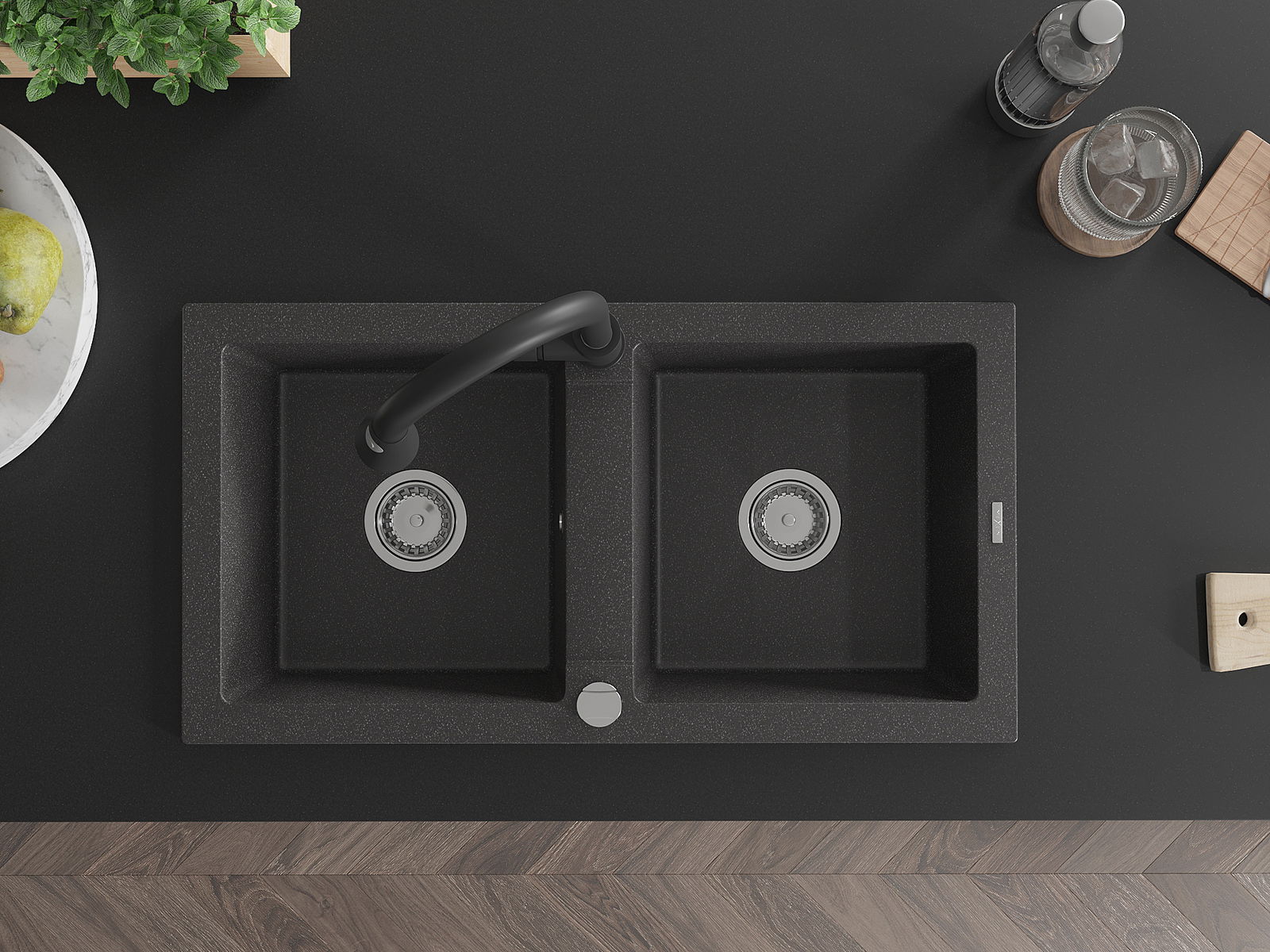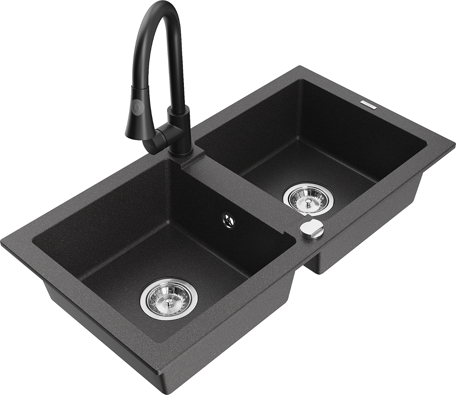 Mexen Mario zlewozmywak granitowy 2-komorowy z baterią kuchenną Elia, czarny nakrapiany - 6504-76-670101-70