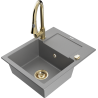 Mexen Enzo zlewozmywak granitowy 1-komorowy z ociekaczem i baterią kuchenną Elia, beżowy - 6506-69-670101-50