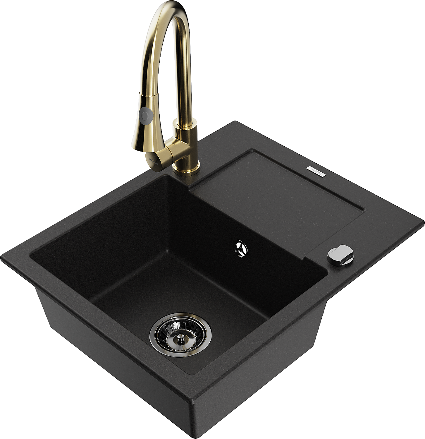 Mexen Enzo zlewozmywak granitowy 1-komorowy z ociekaczem i baterią kuchenną Elia, czarny - 6506-77-670101-50-B