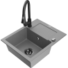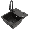 Mexen Enzo zlewozmywak granitowy 1-komorowy z ociekaczem i baterią kuchenną Elia, czarny - 6506-77-670101-70-B