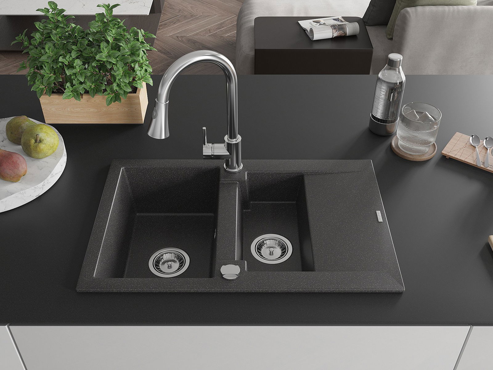 Zlewozmywak został wykonany z wysokiej jakości granitu. Stanowi eleganckie, a przede wszystkim praktyczne uzupełnienie każdej kuchni, niezależnie od jej stylu. Wysoka jakość oraz trwałość granitu zapewniają wieloletnie użytkowanie.