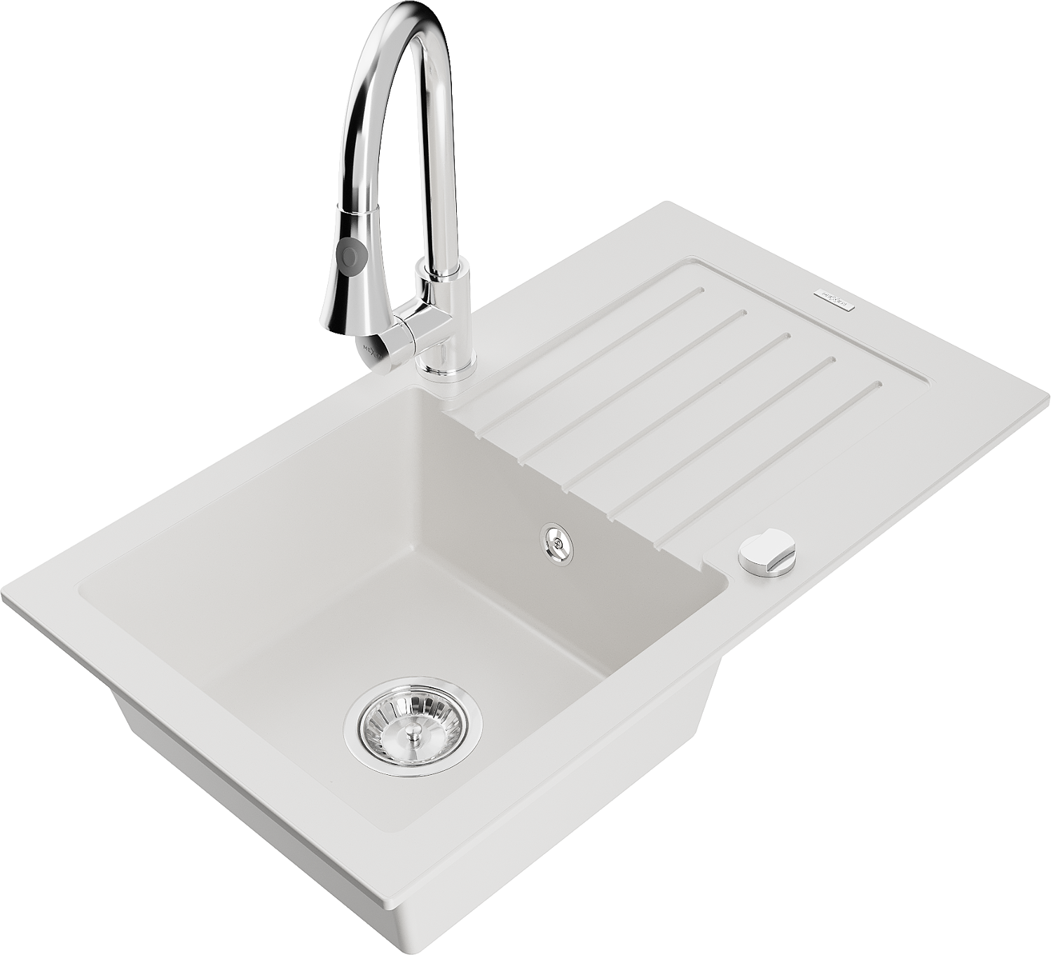 Mexen Pablo zlewozmywak granitowy 1-komorowy z ociekaczem i baterią kuchenną Elia, biały - 6510-20-670101-00