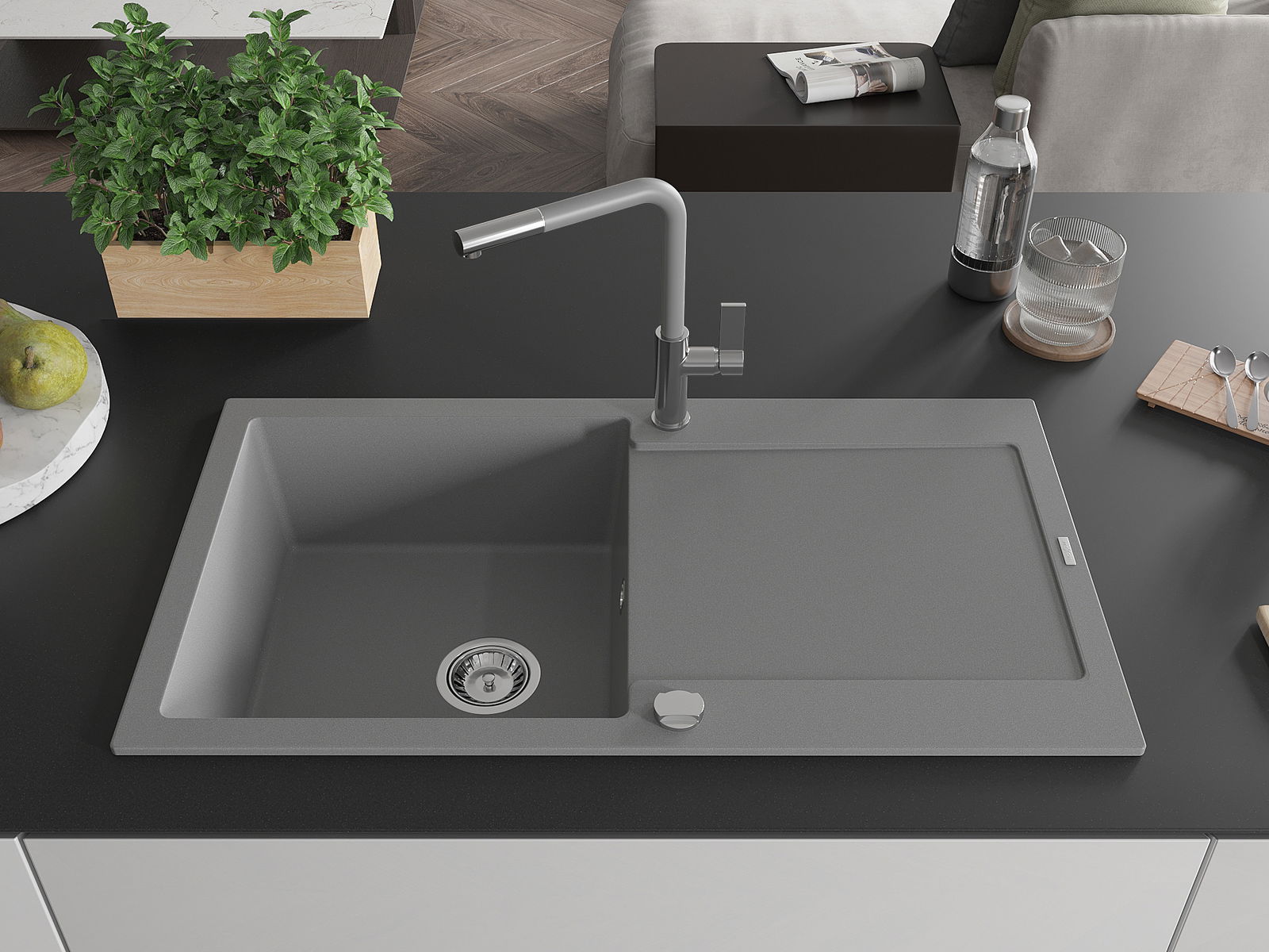 Zlewozmywak został wykonany z wysokiej jakości granitu. Stanowi eleganckie, a przede wszystkim praktyczne uzupełnienie każdej kuchni, niezależnie od jej stylu. Wysoka jakość oraz trwałość granitu zapewniają wieloletnie użytkowanie.