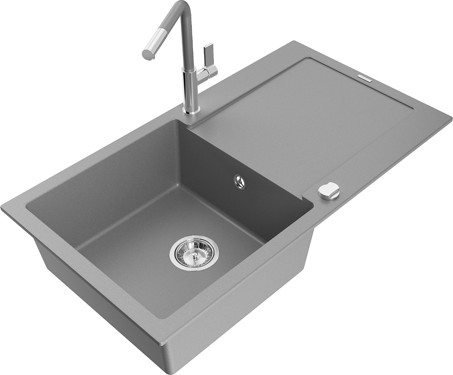 Mexen Leo zlewozmywak granitowy 1-komorowy z ociekaczem i baterią kuchenną Flora, szary - 6501-71-670401-06