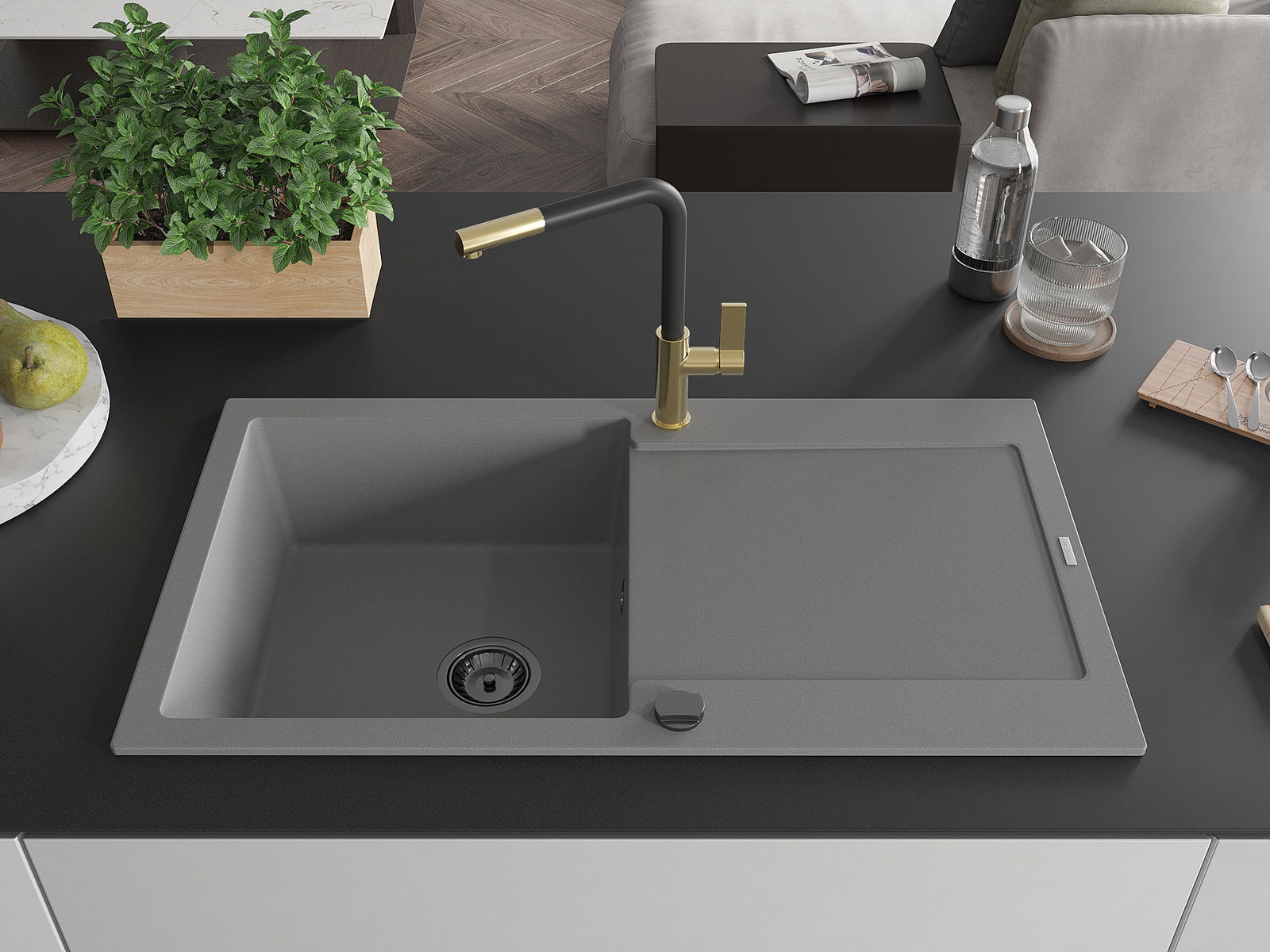 Zlewozmywak został wykonany z wysokiej jakości granitu. Stanowi eleganckie, a przede wszystkim praktyczne uzupełnienie każdej kuchni, niezależnie od jej stylu. Wysoka jakość oraz trwałość granitu zapewniają wieloletnie użytkowanie.