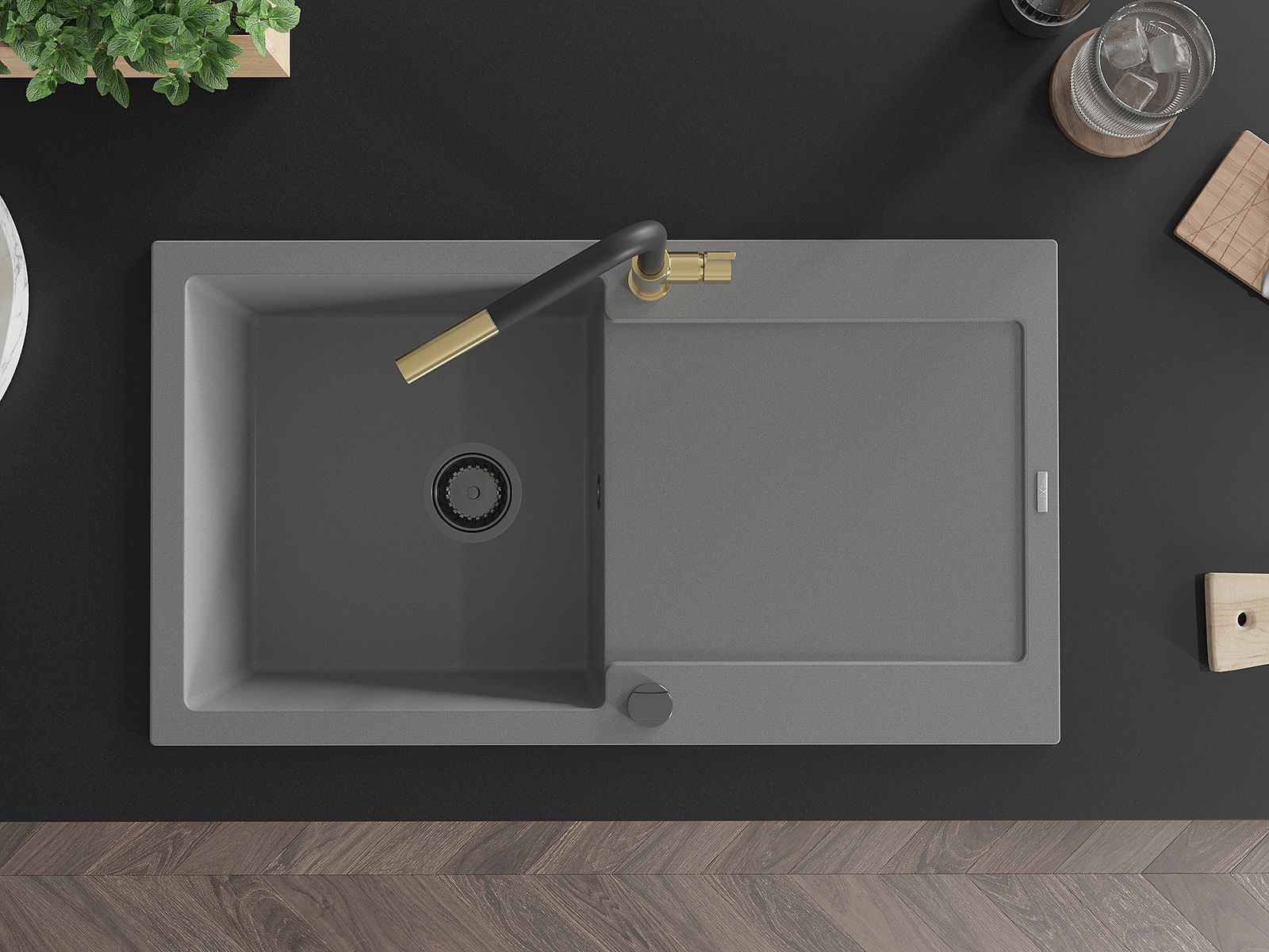 Dzięki zastosowaniu uniwersalnego systemu mocowania, zlew jest odwracalny, a ociekacz może zostać zamontowany na blacie po lewej lub prawej stronie. W ten sposób możesz z łatwością dopasować stronę do swoich potrzeb i warunków.