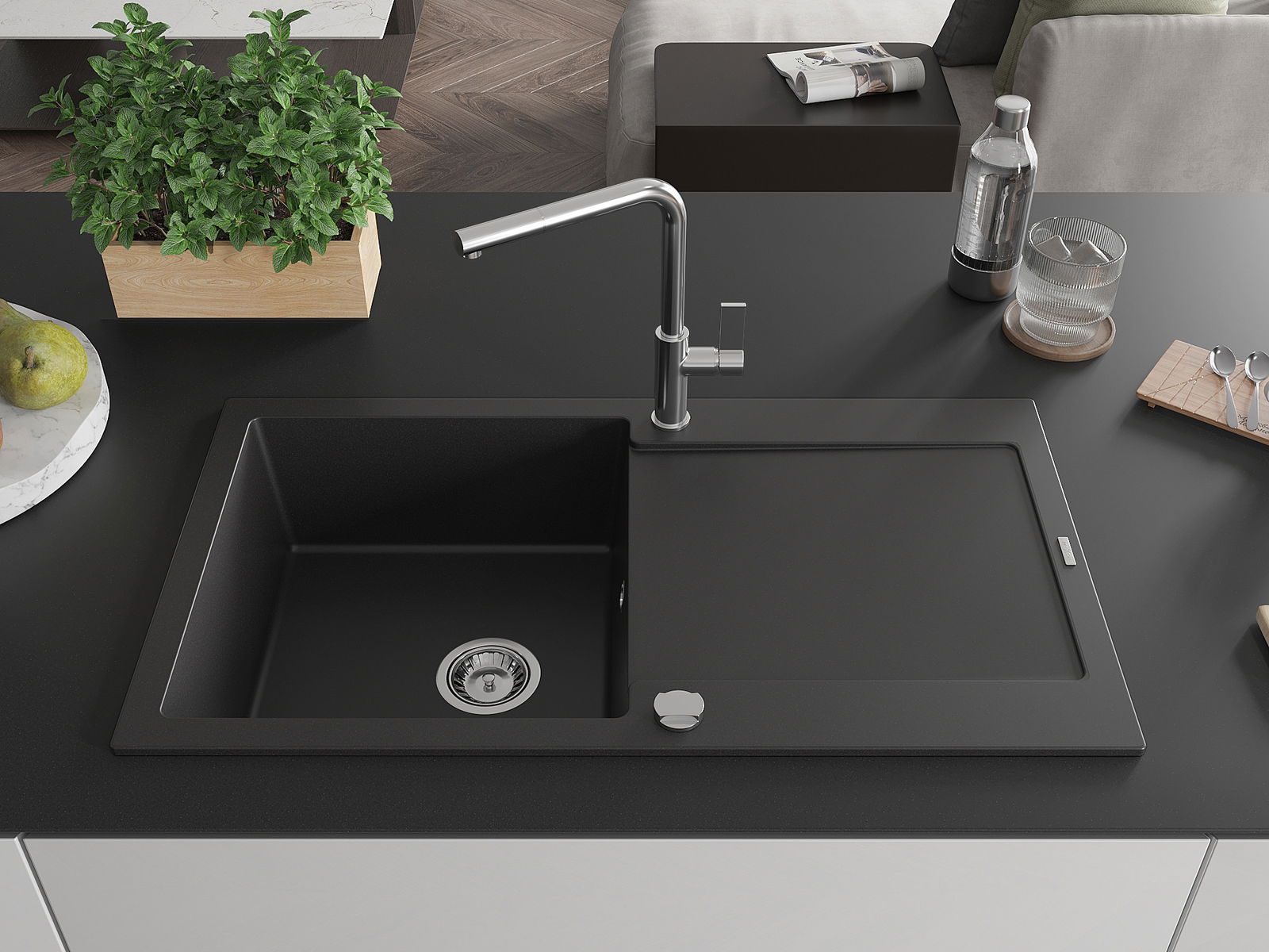 Zlewozmywak został wykonany z wysokiej jakości granitu. Stanowi eleganckie, a przede wszystkim praktyczne uzupełnienie każdej kuchni, niezależnie od jej stylu. Wysoka jakość oraz trwałość granitu zapewniają wieloletnie użytkowanie.