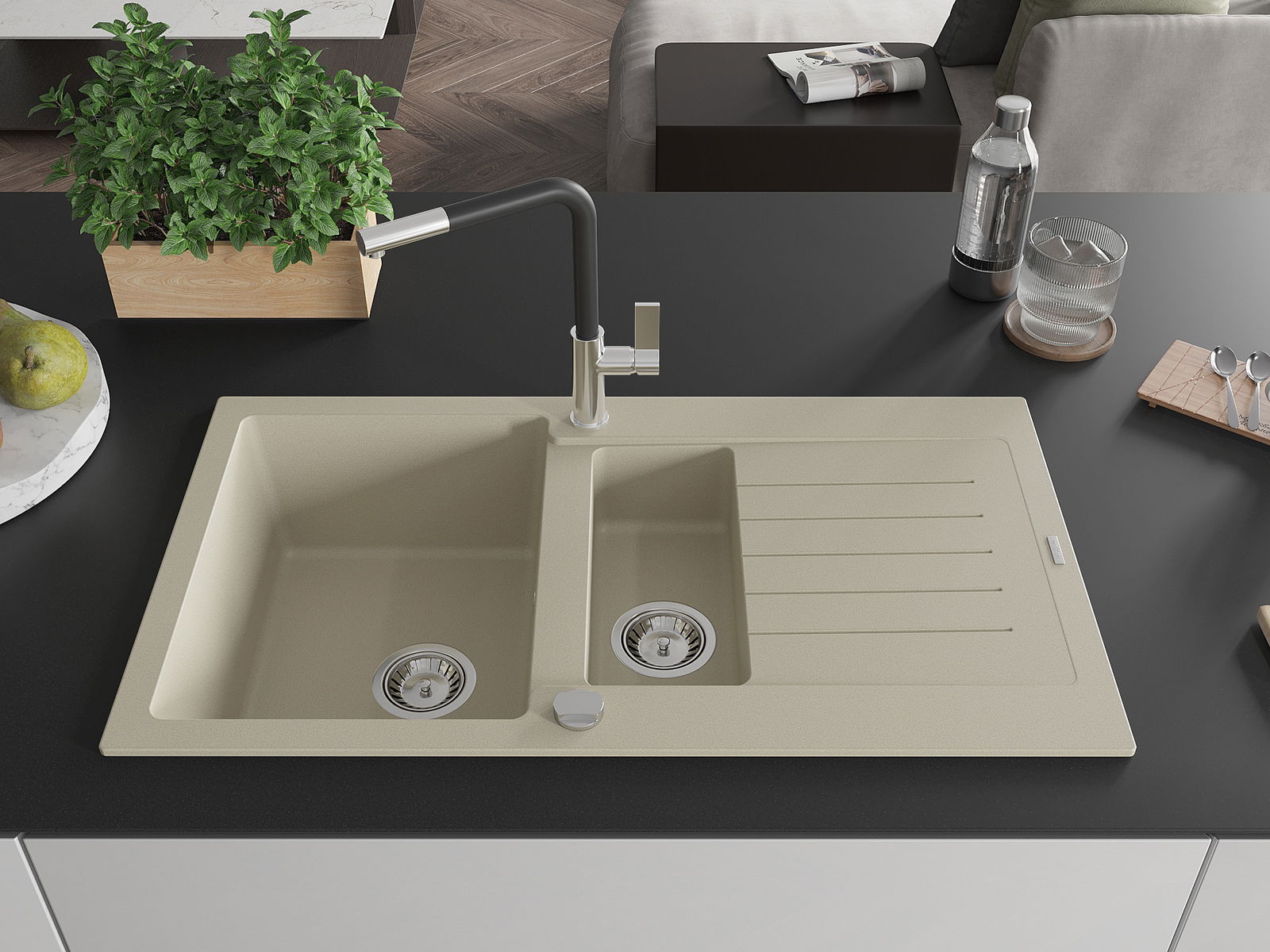 Zlewozmywak został wykonany z wysokiej jakości granitu. Stanowi eleganckie, a przede wszystkim praktyczne uzupełnienie każdej kuchni, niezależnie od jej stylu. Wysoka jakość oraz trwałość granitu zapewniają wieloletnie użytkowanie.