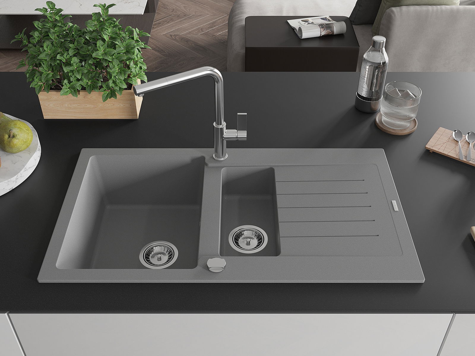 Zlewozmywak został wykonany z wysokiej jakości granitu. Stanowi eleganckie, a przede wszystkim praktyczne uzupełnienie każdej kuchni, niezależnie od jej stylu. Wysoka jakość oraz trwałość granitu zapewniają wieloletnie użytkowanie.
