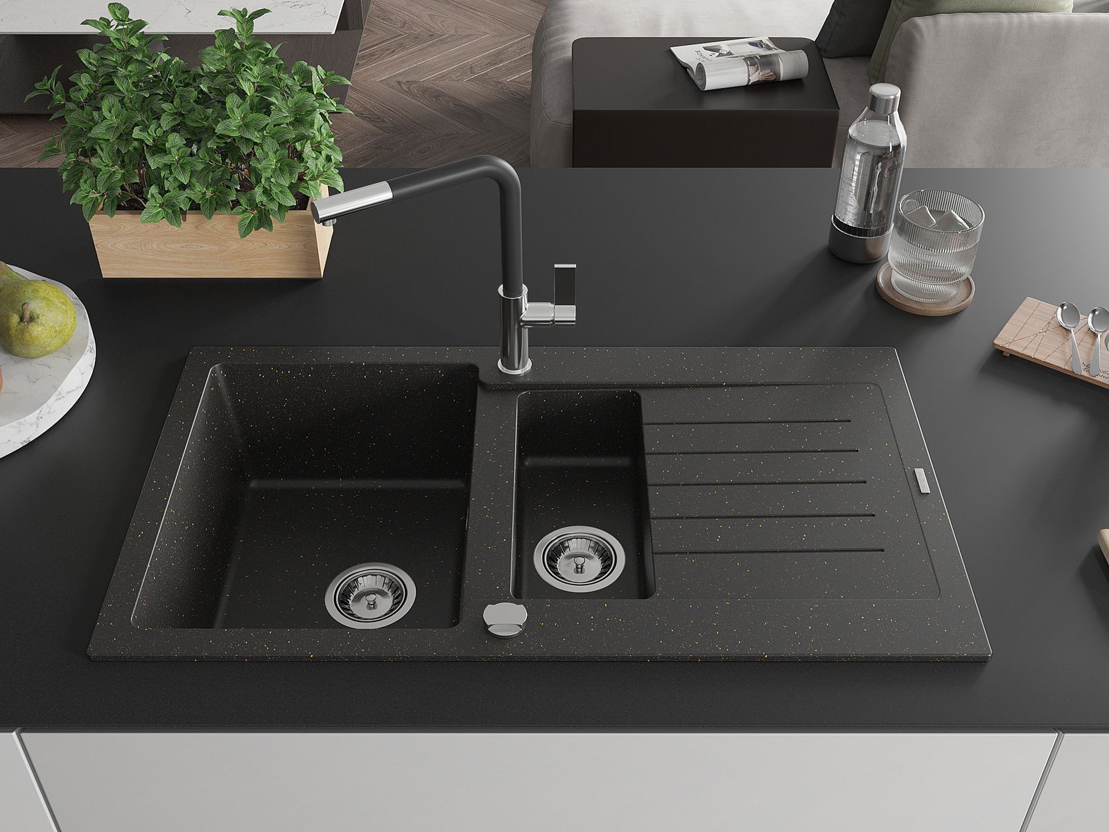 Dobrze zabezpieczona powierzchnia zlewozmywaka hamuje wnikanie zabrudzeń do jego wewnętrznych struktur. Dzięki temu utrzymanie zlewu w czystości jest jeszcze łatwiejsze, a jego powierzchnia zachowuje swoją estetykę na dłużej.