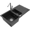 Mexen Matias zlewozmywak granitowy 1,5-komorowy z ociekaczem i baterią kuchenną Flora, czarny nakrapiany - 6502-76-670401-00