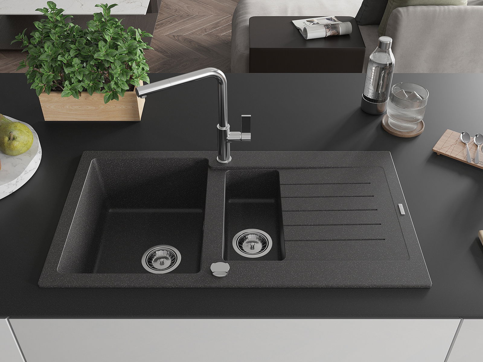 Dobrze zabezpieczona powierzchnia zlewozmywaka hamuje wnikanie zabrudzeń do jego wewnętrznych struktur. Dzięki temu utrzymanie zlewu w czystości jest jeszcze łatwiejsze, a jego powierzchnia zachowuje swoją estetykę na dłużej.