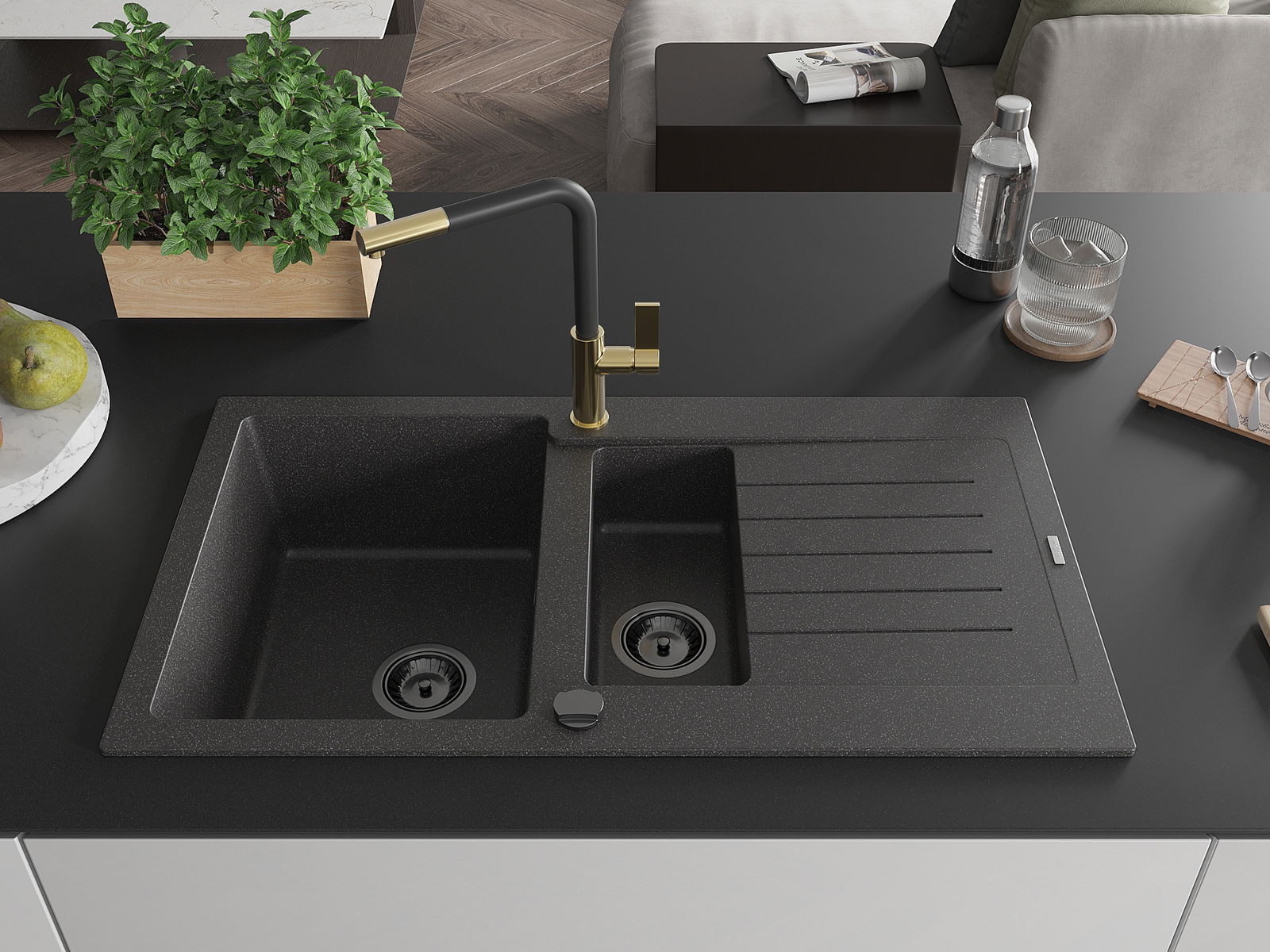 Zlewozmywak został wykonany z wysokiej jakości granitu. Stanowi eleganckie, a przede wszystkim praktyczne uzupełnienie każdej kuchni, niezależnie od jej stylu. Wysoka jakość oraz trwałość granitu zapewniają wieloletnie użytkowanie.
