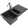 Mexen Matias zlewozmywak granitowy 1,5-komorowy z ociekaczem i baterią kuchenną Flora, czarny nakrapiany - 6502-76-670401-57-B