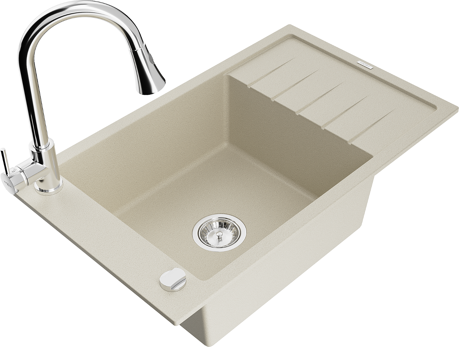 Mexen Elias zlewozmywak granitowy 1-komorowy z ociekaczem i baterią kuchenną Elia, beżowy - 6511-69-670101-00