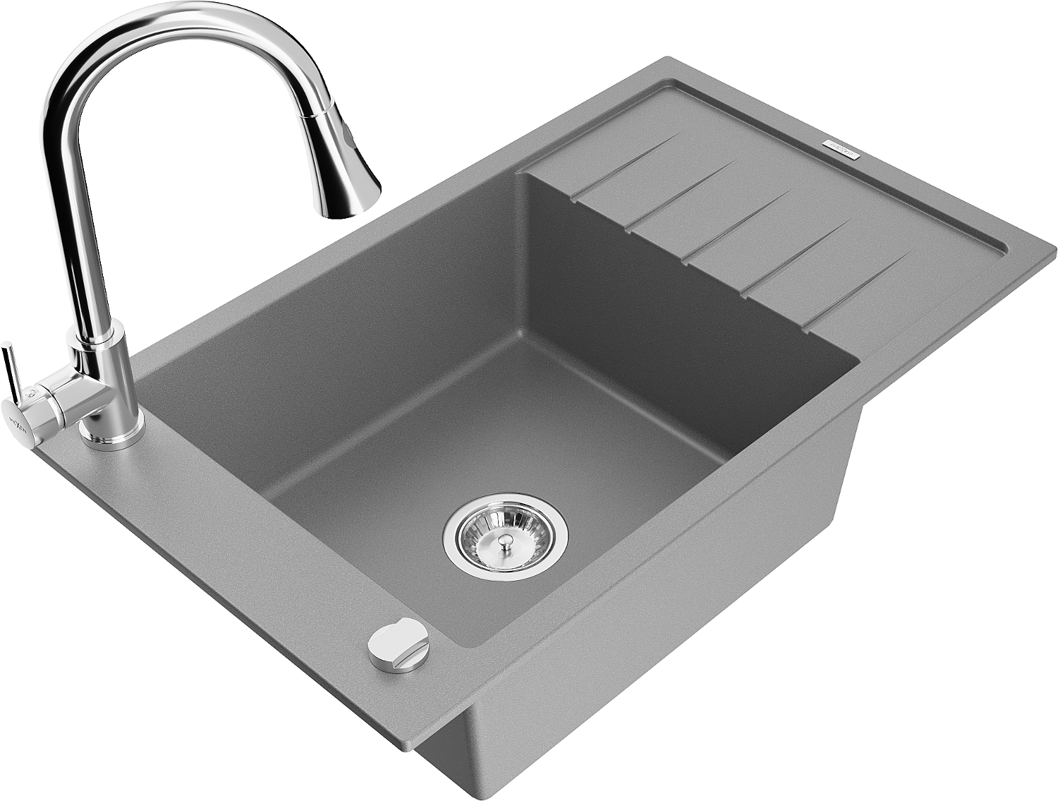 Mexen Elias zlewozmywak granitowy 1-komorowy z ociekaczem i baterią kuchenną Elia, szary - 6511-71-670101-00