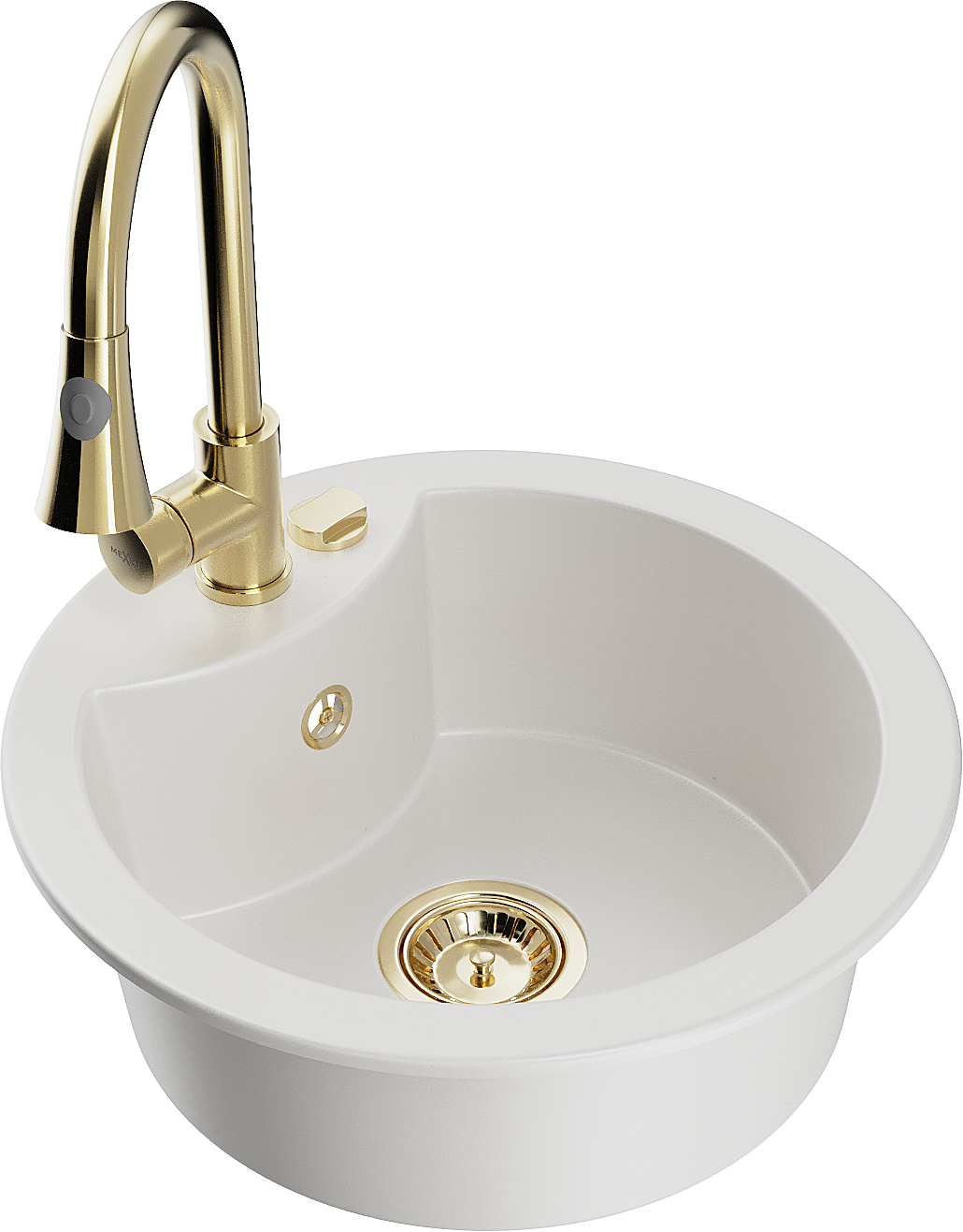 Mexen Diego zlewozmywak granitowy 1-komorowy z baterią kuchenną Elia, biały - 6512-20-670101-50