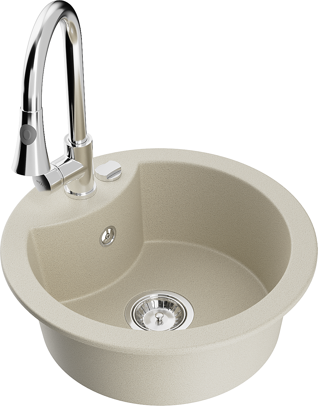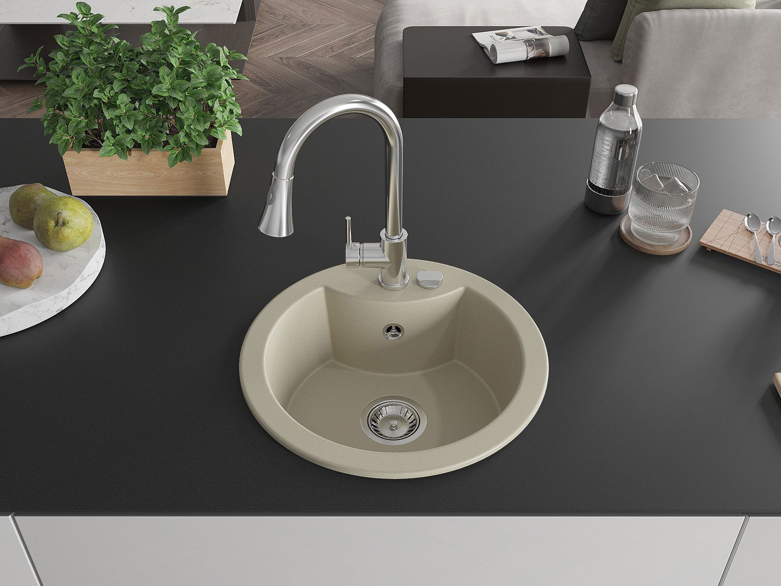 Mexen Diego zlewozmywak granitowy 1-komorowy z baterią kuchenną Elia, beżowy - 6512-69-670101-00