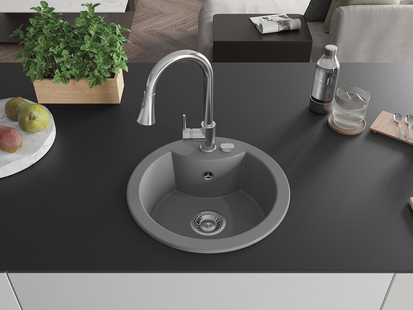 Zlewozmywak został wykonany z wysokiej jakości granitu. Stanowi eleganckie, a przede wszystkim praktyczne uzupełnienie każdej kuchni, niezależnie od jej stylu. Wysoka jakość oraz trwałość granitu zapewniają wieloletnie użytkowanie.