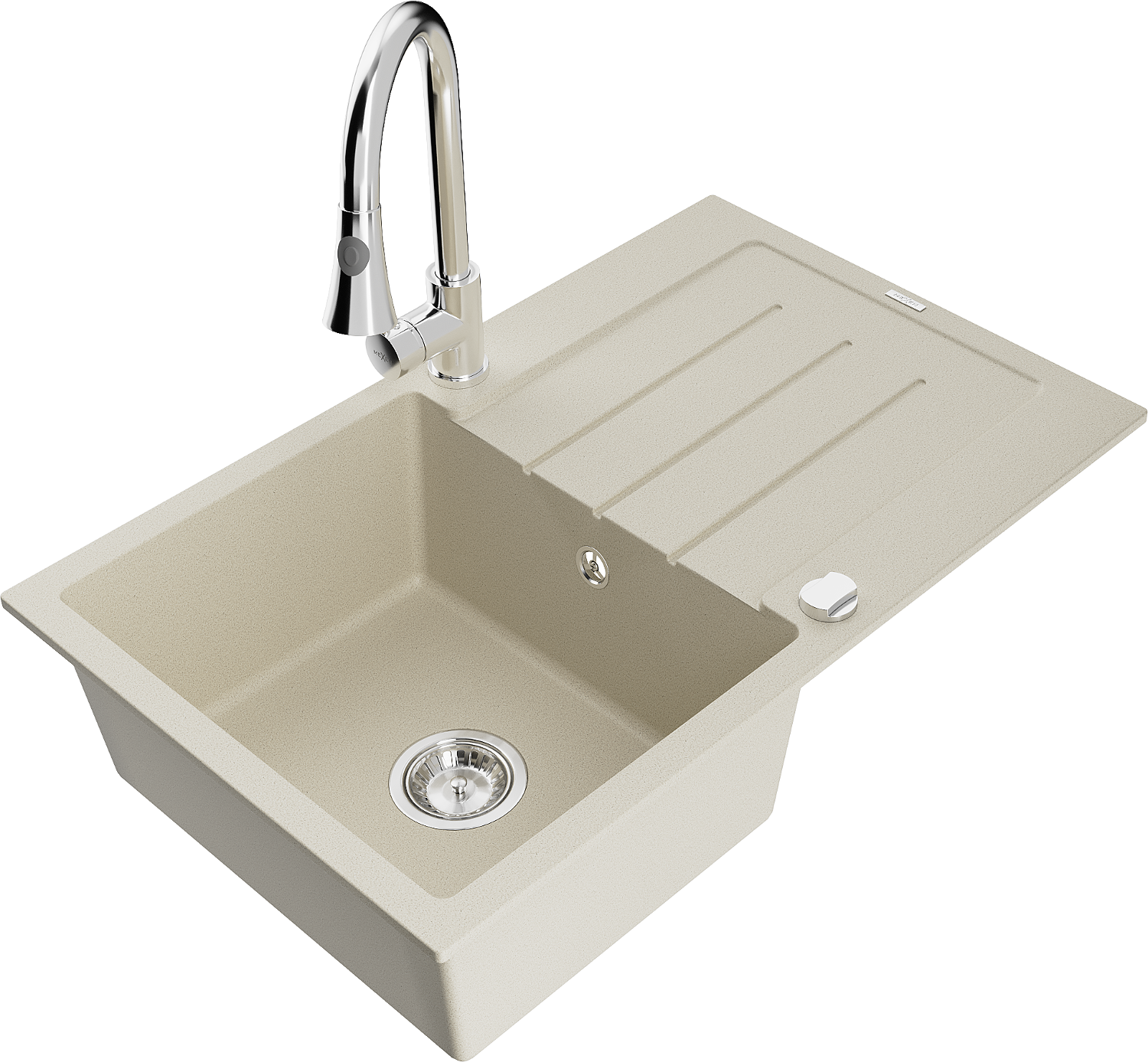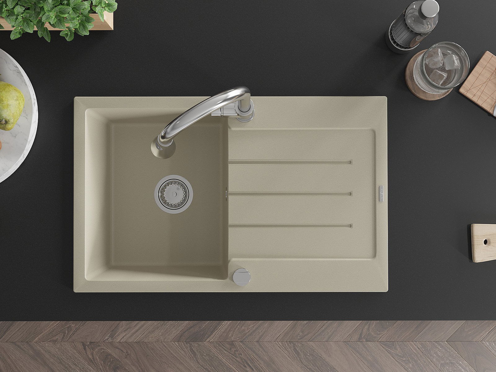 Mexen Bruno zlewozmywak granitowy 1-komorowy z ociekaczem i baterią kuchenną Elia, beżowy - 6513-69-670101-00