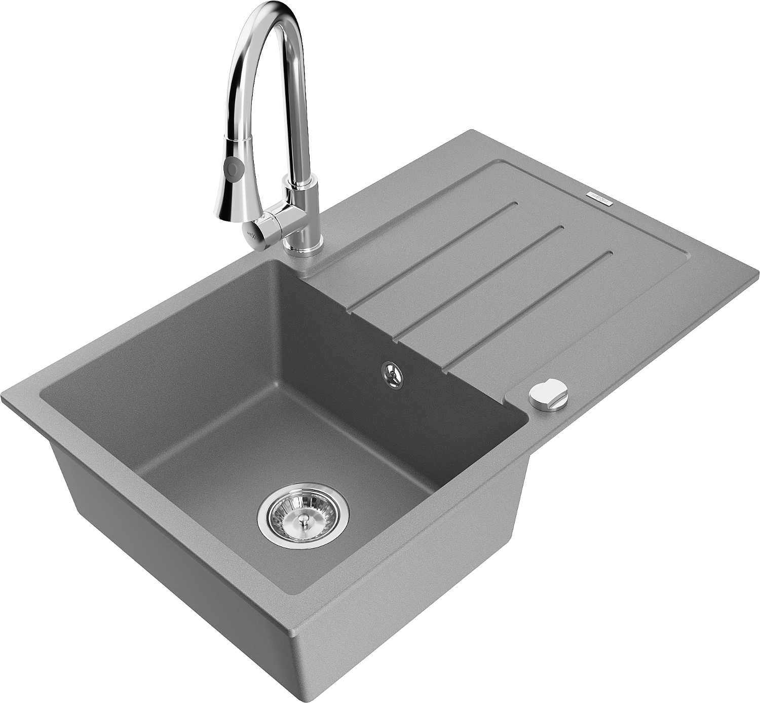 Mexen Bruno zlewozmywak granitowy 1-komorowy z ociekaczem i baterią kuchenną Elia, szary - 6513-71-670101-00