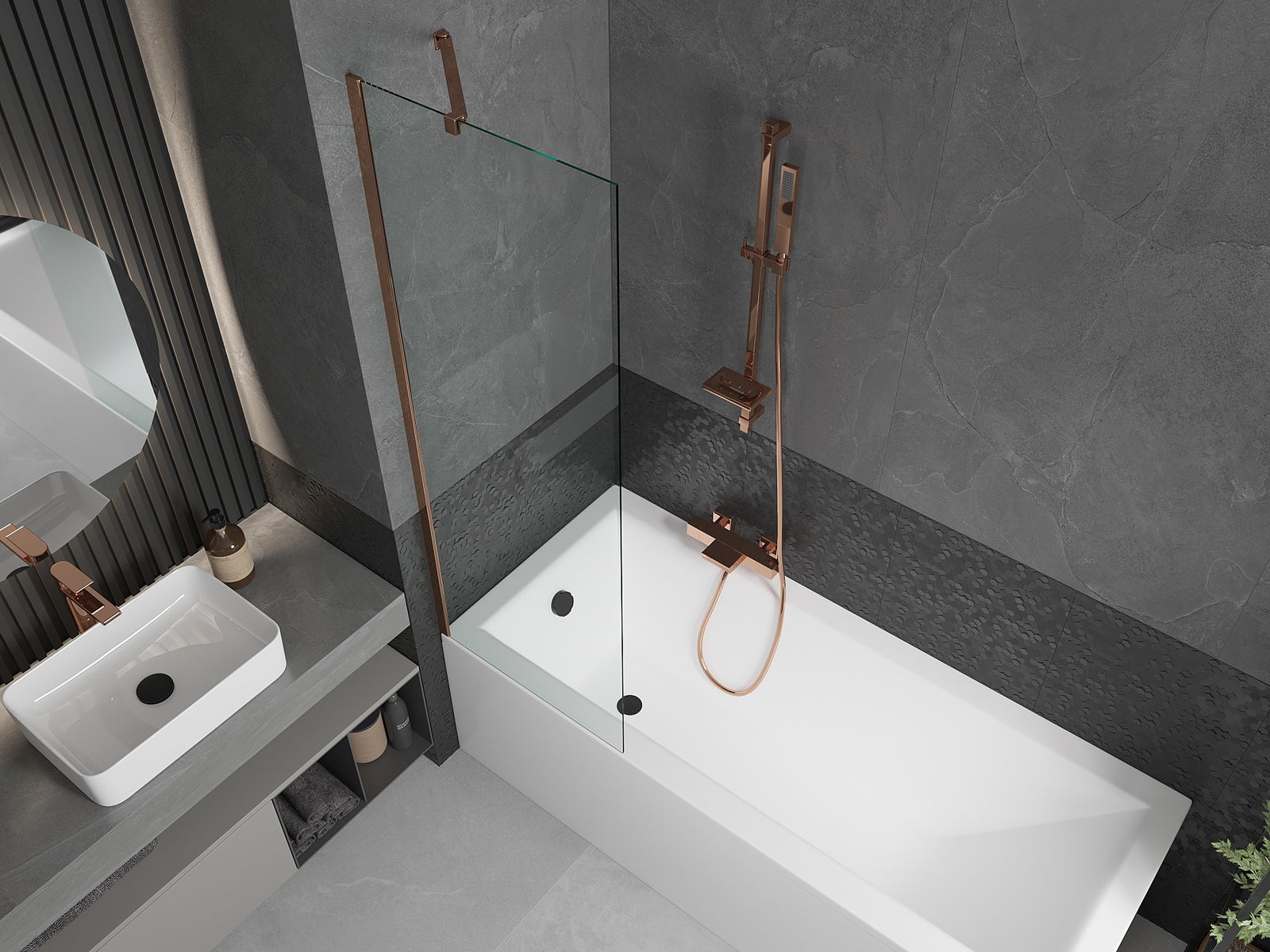 Dzięki zastosowaniu uniwersalnego systemu mocowania, parawan może być zamontowany z prawej lub z lewej strony, zależnie od potrzeb. W ten sposób możesz z łatwością zaprojektować prysznic dopasowany do przestrzeni łazienki.
