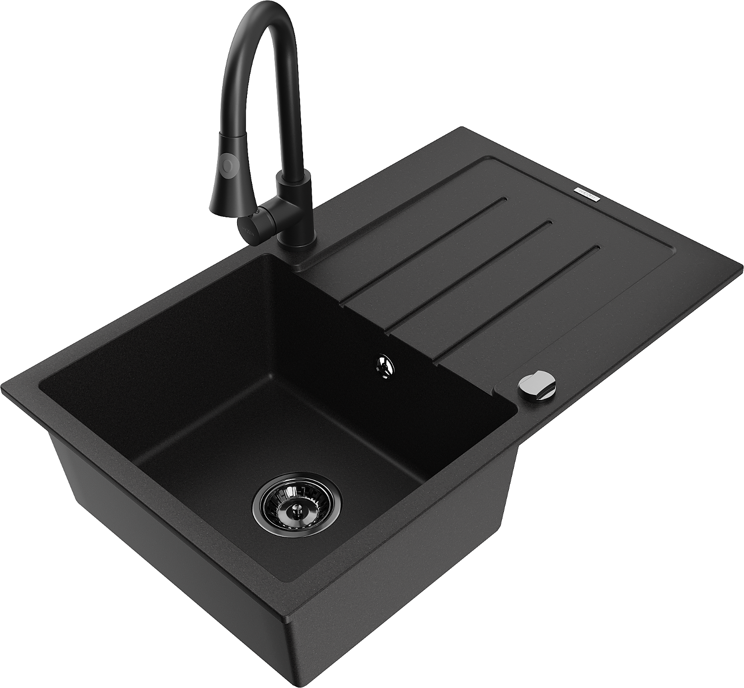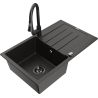 Mexen Bruno zlewozmywak granitowy 1-komorowy z ociekaczem i baterią kuchenną Elia, czarny - 6513-77-670101-70-B