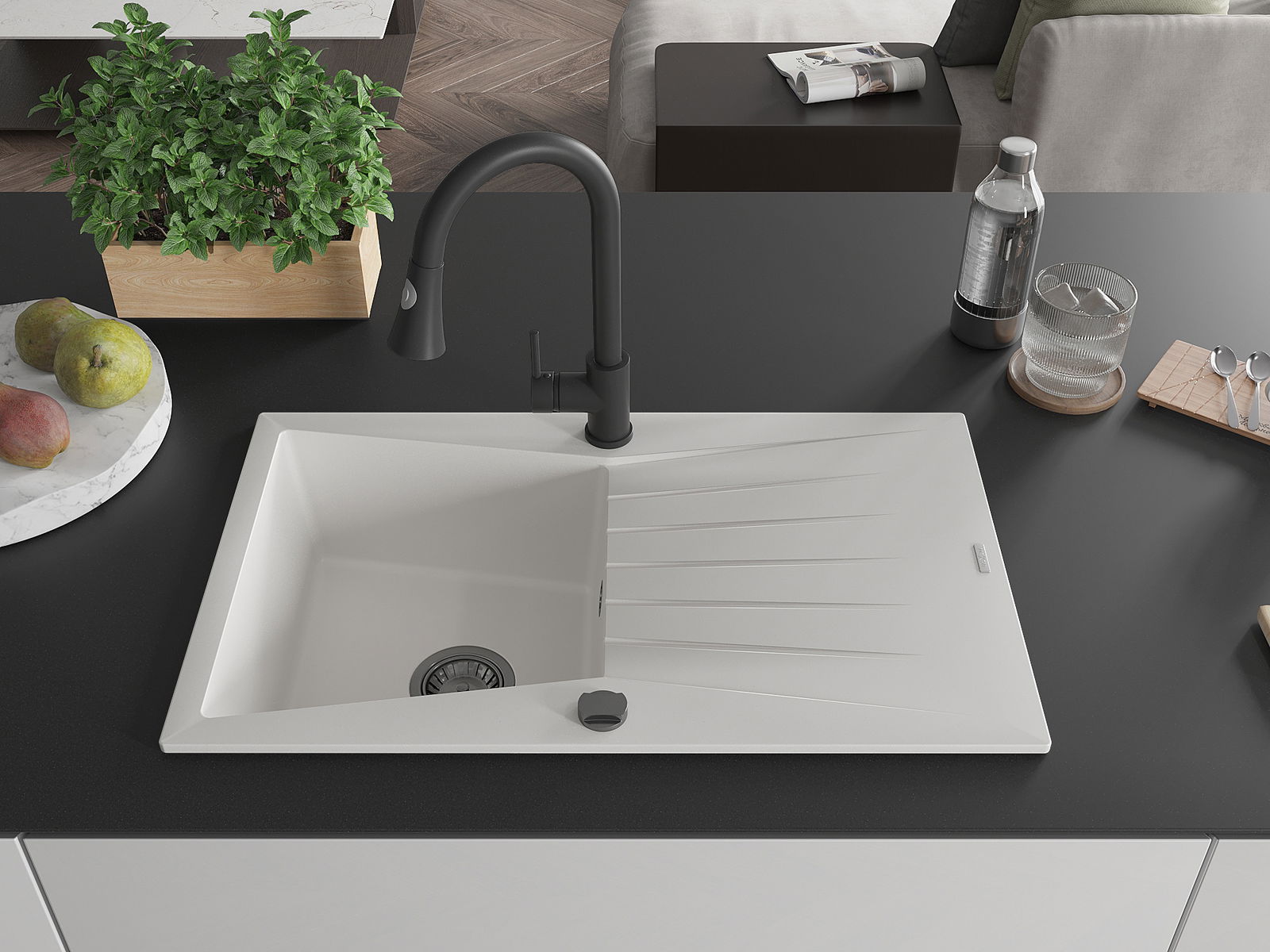 Zlewozmywak został wykonany z wysokiej jakości granitu. Stanowi eleganckie, a przede wszystkim praktyczne uzupełnienie każdej kuchni, niezależnie od jej stylu. Wysoka jakość oraz trwałość granitu zapewniają wieloletnie użytkowanie.