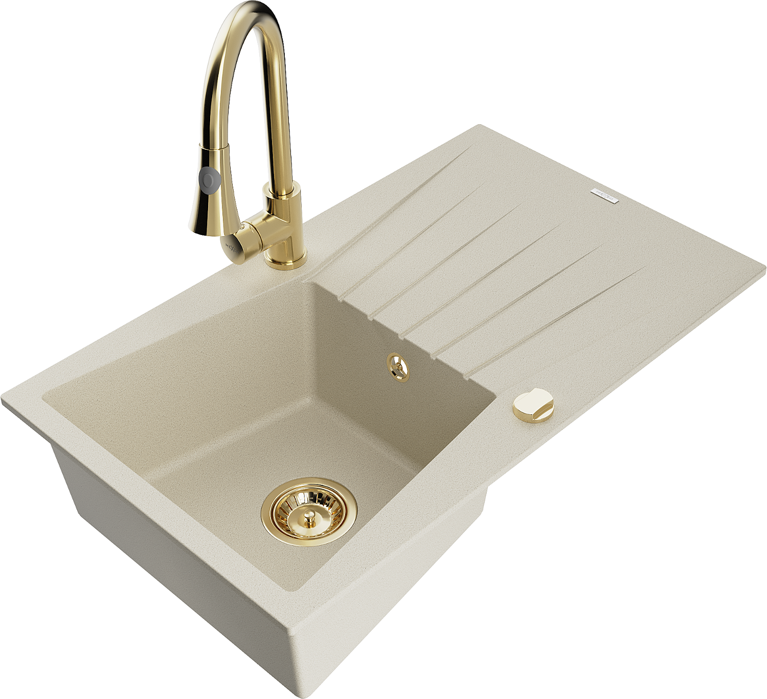 Mexen Cesar zlewozmywak granitowy 1-komorowy z ociekaczem i baterią kuchenną Elia, beżowy - 6514-69-670101-50