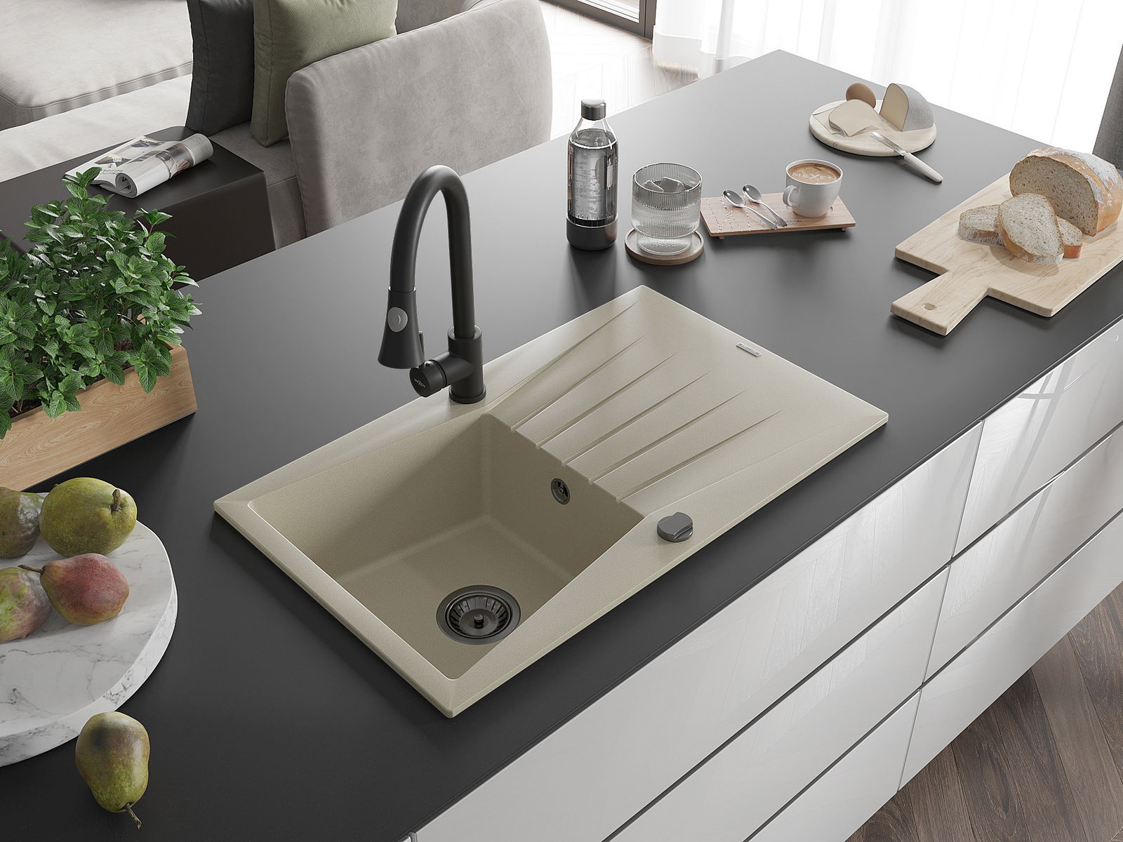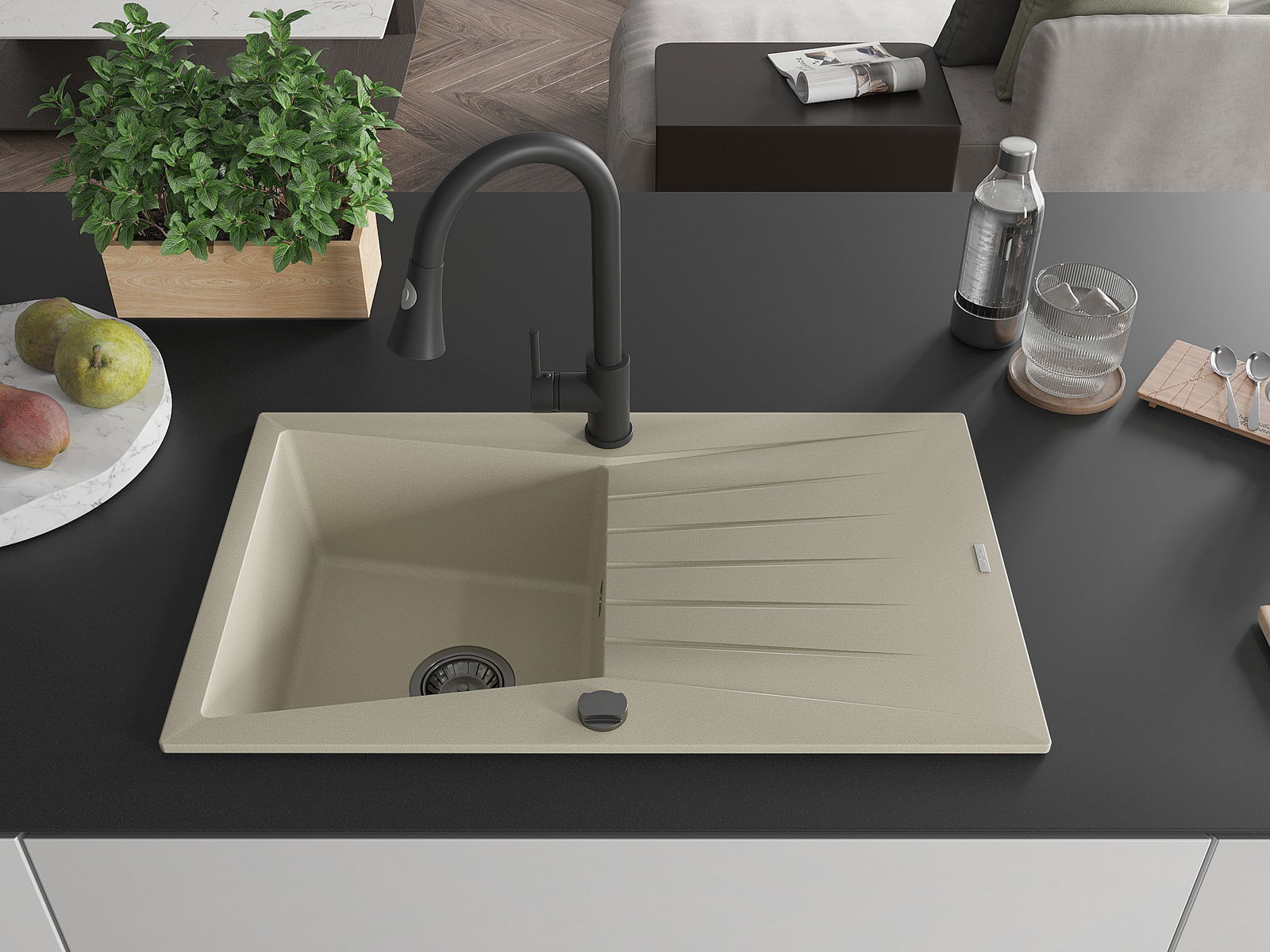 Zlewozmywak został wykonany z wysokiej jakości granitu. Stanowi eleganckie, a przede wszystkim praktyczne uzupełnienie każdej kuchni, niezależnie od jej stylu. Wysoka jakość oraz trwałość granitu zapewniają wieloletnie użytkowanie.