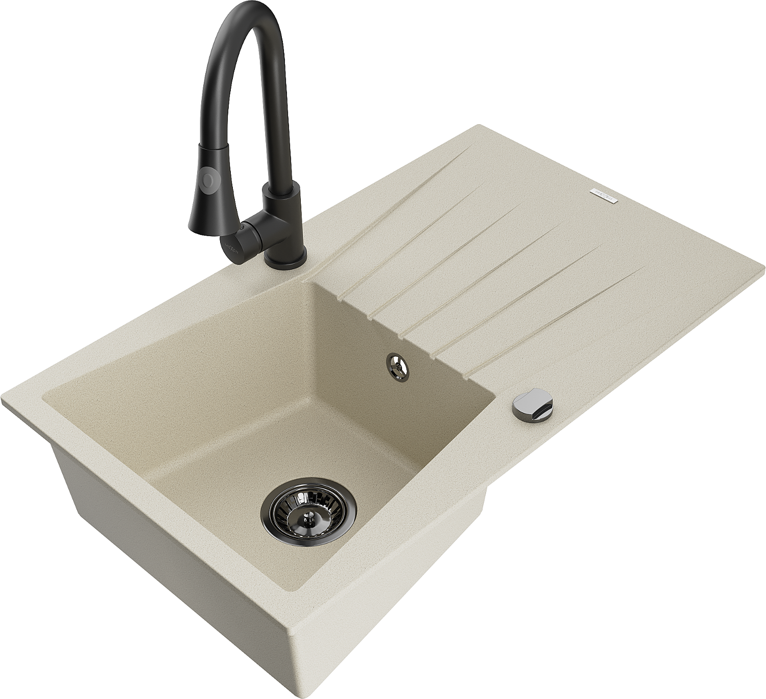 Mexen Cesar zlewozmywak granitowy 1-komorowy z ociekaczem i baterią kuchenną Elia, beżowy - 6514-69-670101-70