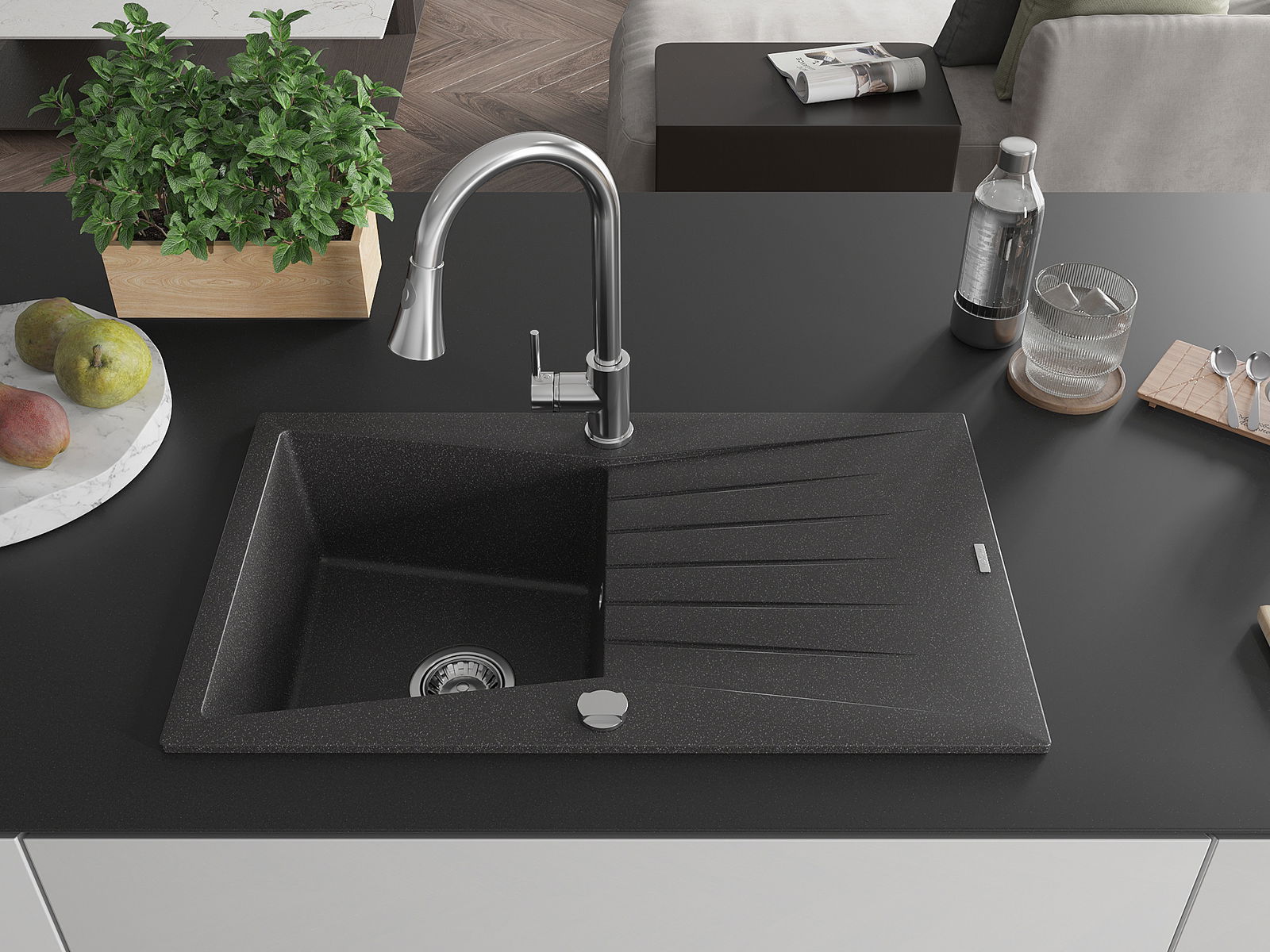 Zlewozmywak został wykonany z wysokiej jakości granitu. Stanowi eleganckie, a przede wszystkim praktyczne uzupełnienie każdej kuchni, niezależnie od jej stylu. Wysoka jakość oraz trwałość granitu zapewniają wieloletnie użytkowanie.